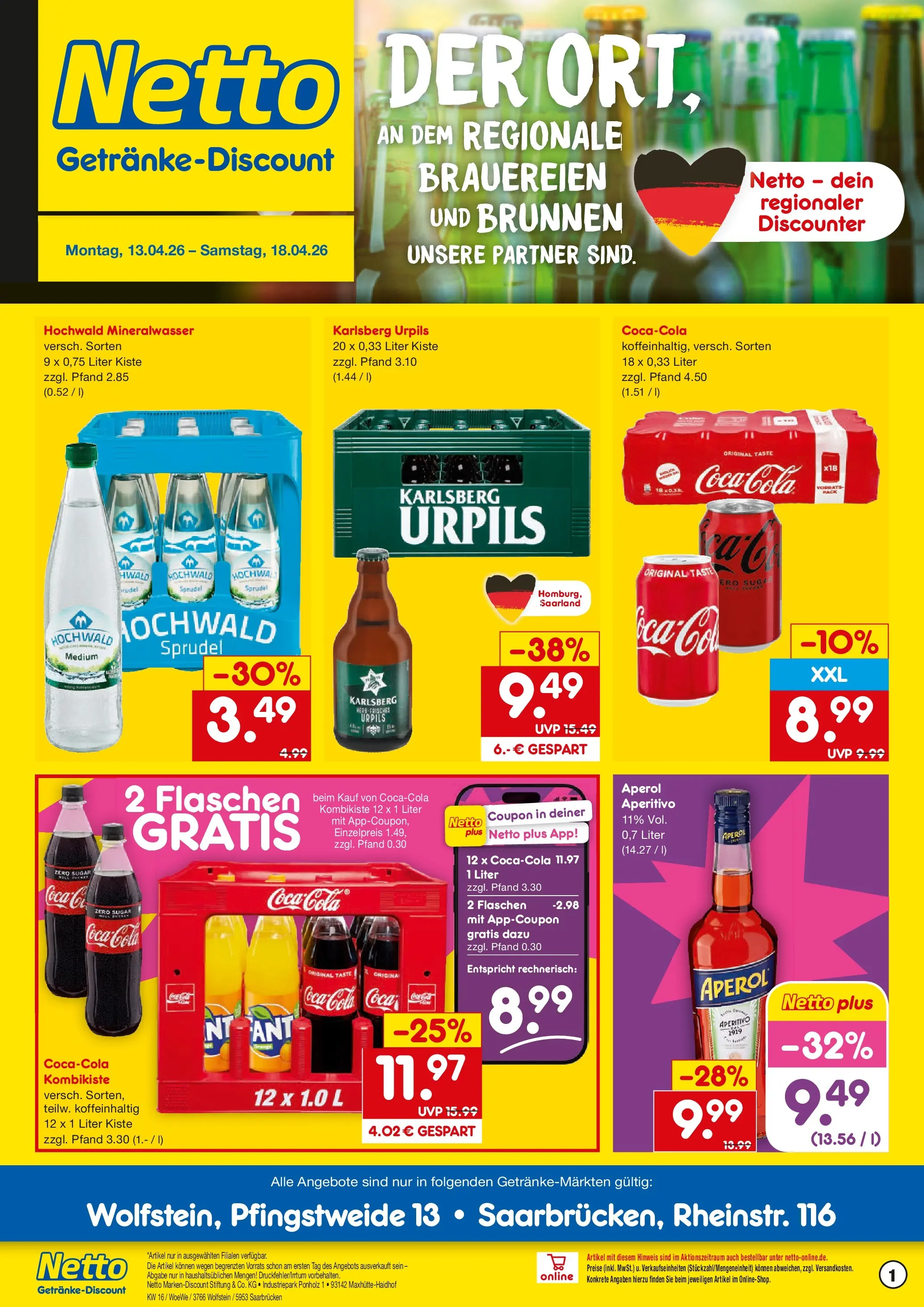 Ab Montag, dem 13. April 2026, lockt Netto mit unschlagbaren Preisen für eine breite Auswahl an Getränken. In der kommenden Woche können sich Kunden auf erfrischende Angebote freuen, die den Durst löschen und den Geldbeutel schonen. Die aktuellen Netto Marken-Discount Prospekt 13.04.2026 – 18.04.2026 digitaler Prospekt umfassen alles von Mineralwasser über Bier bis hin zu Softdrinks und Spirituosen, sodass für jeden Geschmack das Passende dabei ist. Besonders im Fokus stehen diesmal regionale Partner, die für Qualität und Heimatverbundenheit stehen.