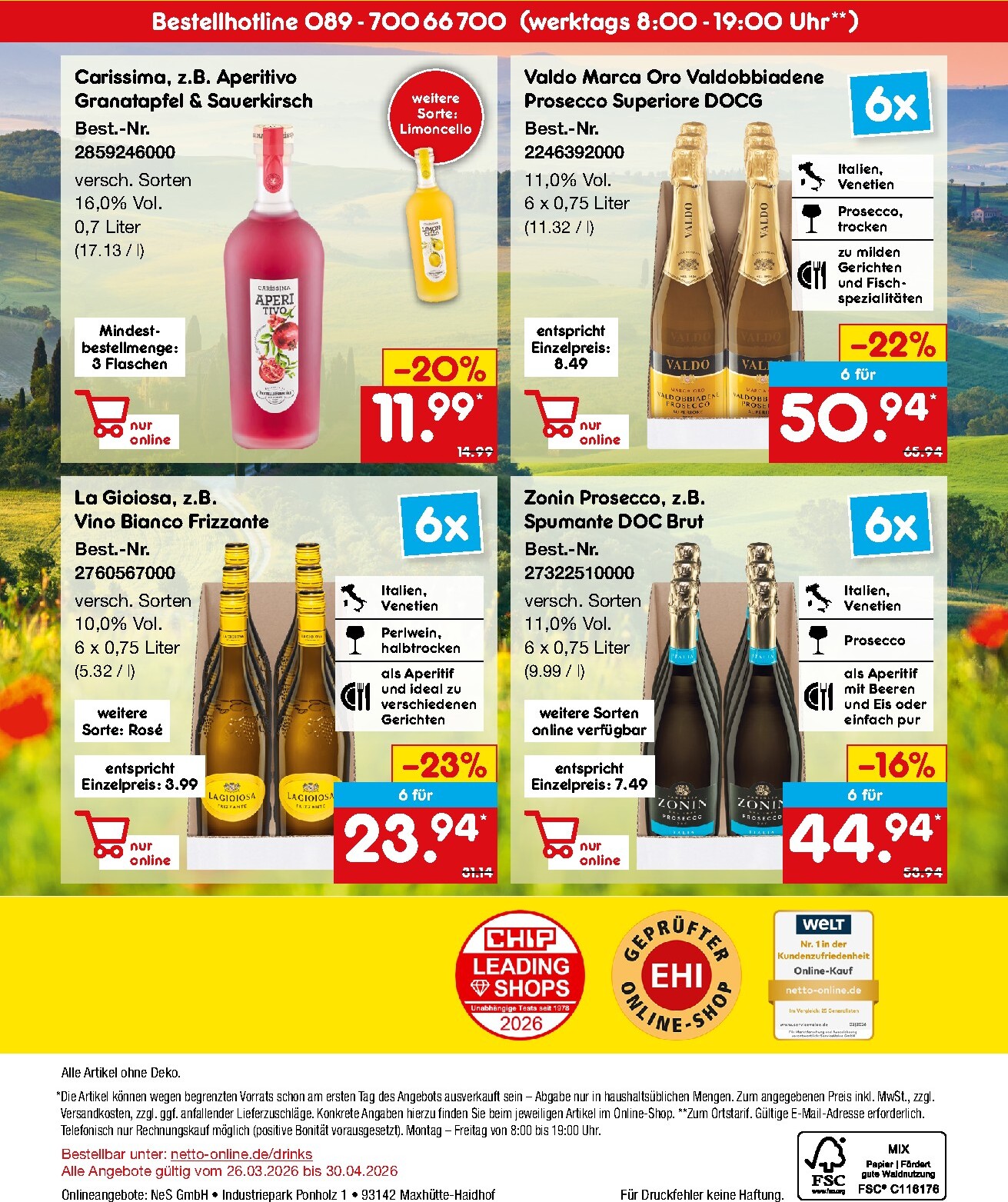 Der Frühling ist da und Netto Marken-Discount feiert dies mit einer exklusiven Online-Aktion, die besonders Wein- und Spirituosenliebhaber begeistern wird. Vom 26. bis zum 30. April 2026 können Sie sich auf sensationelle Preise für eine erlesene Auswahl an Getränken freuen. Das Highlight dieser Woche ist zweifellos der Sarti Rosa Aperitif, der für nur 14,99 € statt 18,99 € erhältlich ist und sich perfekt für sonnige Tage eignet. Diese Angebote unter dem Motto Netto Marken-Discount Prospekt 26.04.2026 – 30.04.2026 digitaler Prospekt sind ausschließlich online verfügbar und bieten eine hervorragende Gelegenheit, den eigenen Vorrat für kommende Feste oder gemütliche Abende aufzustocken. Die Mindestbestellmenge von drei Flaschen beim Sarti Aperitif lädt dazu ein, gemeinsam mit Freunden zu bestellen und zu genießen.