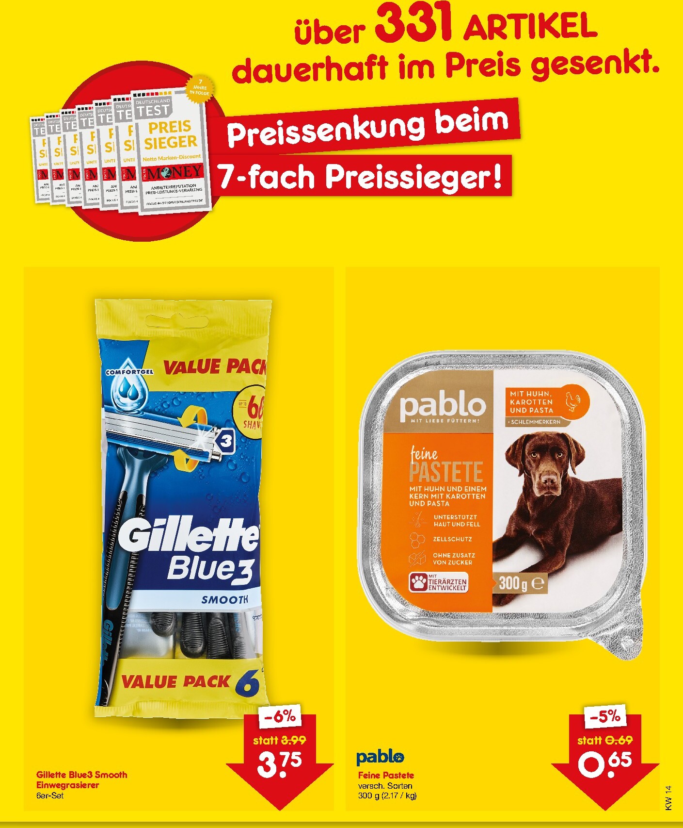 Netto Marken-Discount startet eine beeindruckende Preisoffensive und senkt dauerhaft die Preise für mehr als 331 Artikel. Kunden können sich auf unschlagbare Angebote in allen Sortimentsbereichen freuen. Diese Preissenkungen unterstreichen Nettos Position als 7-facher Preissieger und machen den Wocheneinkauf noch erschwinglicher. Mit den Netto Marken-Discount Prospekt Heute 2026 zum Blättern sichern Sie sich Top-Qualität zu dauerhaft niedrigen Preisen. Profitieren Sie von einer riesigen Auswahl an reduzierten Produkten, die Ihren Geldbeutel spürbar entlasten und Ihnen mehr für Ihr Geld bieten.