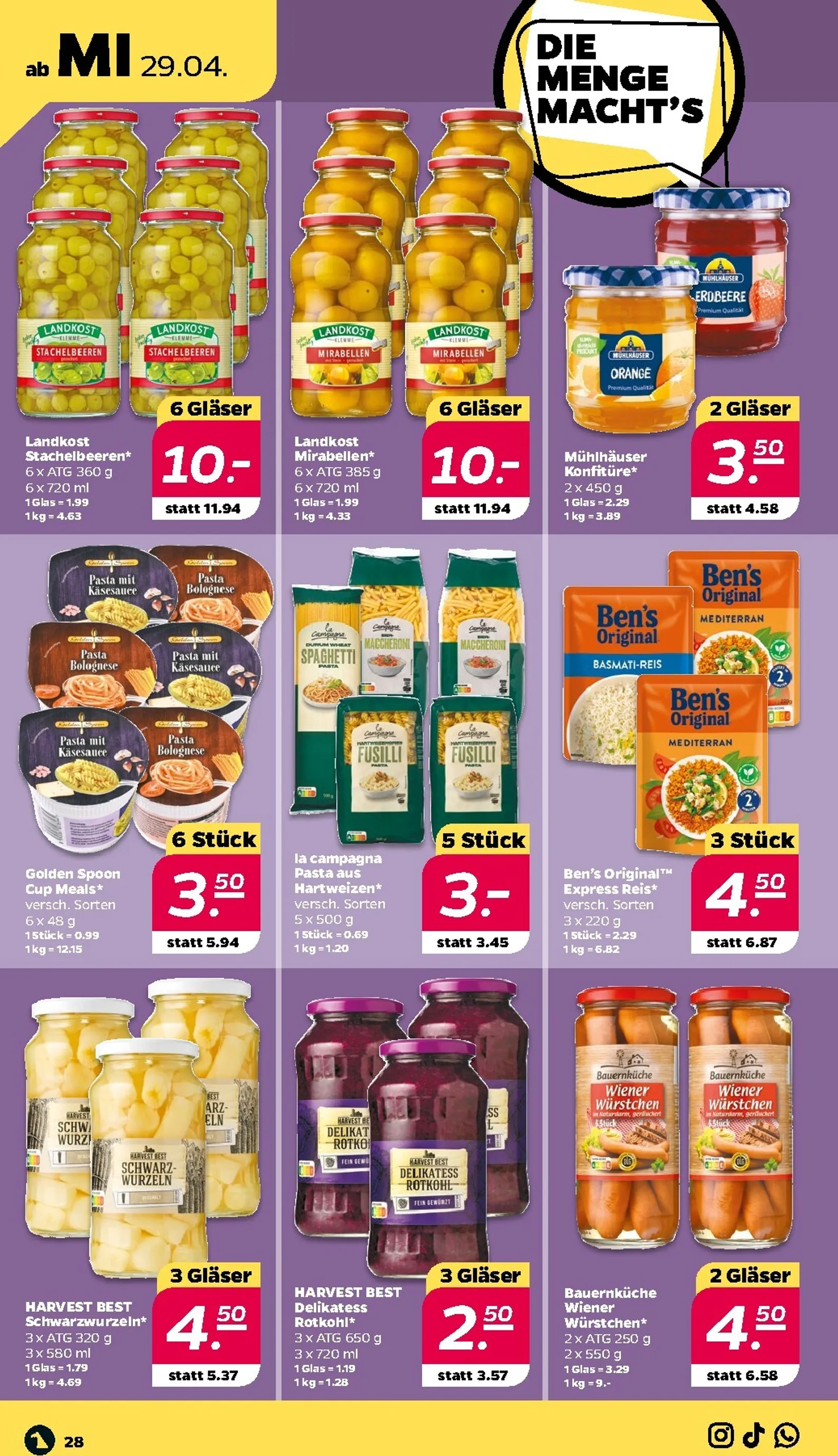 Die Obst- und Gemüseabteilung lockt in der nächsten Woche mit besonders attraktiven Preisen. Saftige Mandarinen gibt es im 750-g-Netz für nur 1,79 Euro, während eine reife Mango für 1,49 Euro erhältlich ist. Für die gesunde Küche sind GO BIO Zucchini und frischer Spinat im 500-g-Pack für nur 1,39 Euro bzw. 1,59 Euro ideale Begleiter. Diese Angebote machen es leicht, sich die ganze Woche über gesund und abwechslungsreich zu ernähren.