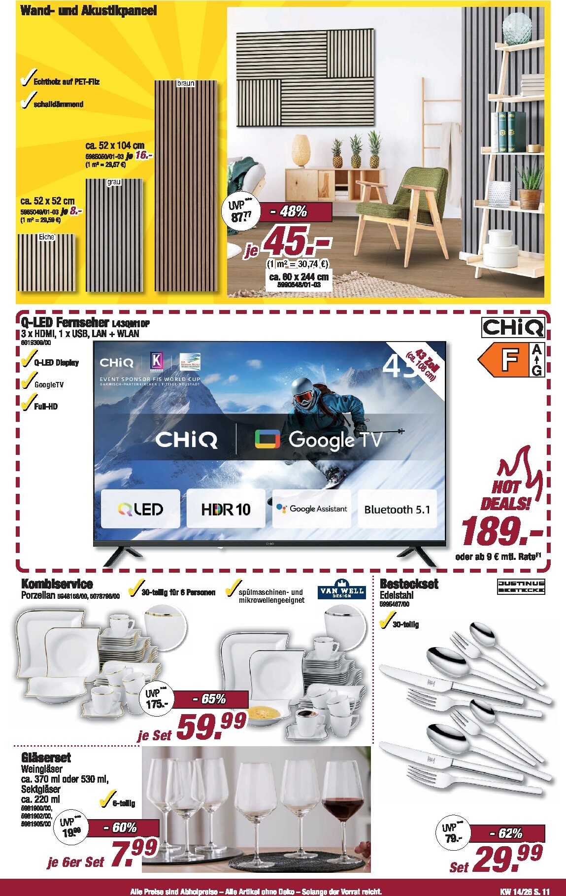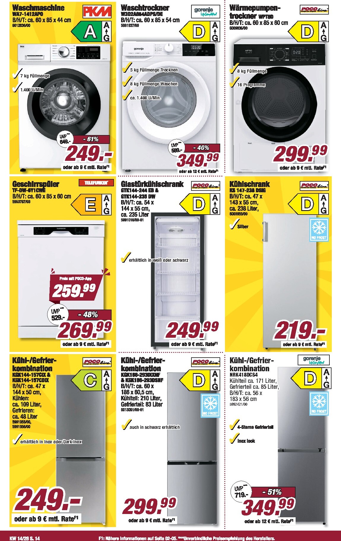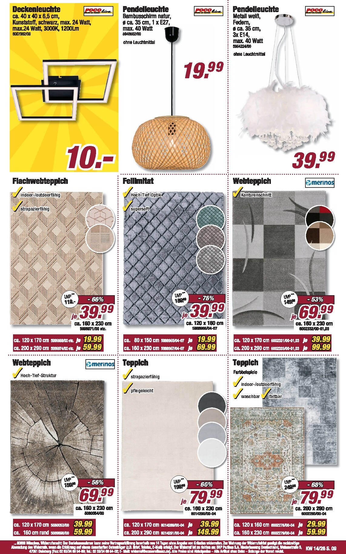 Abgerundet wird das Sortiment durch attraktive Angebote für Küche und Haushalt. Komplette Küchenblöcke sind bereits ab 399 Euro erhältlich und teilweise sogar am Lager vorrätig. Auch bei Haushaltswaren lassen sich Schnäppchen machen: Ein 4-teiliges Topfset von Tefal kostet nur 55 Euro, und ein schicker Flachwebteppich ist um 66% auf 79 Euro reduziert. Stöbern Sie durch die vielen kleinen und großen Deals, um Ihr Zuhause zu verschönern. Alle Details und noch mehr Inspiration finden Sie im aktuellen Poco Prospekt.