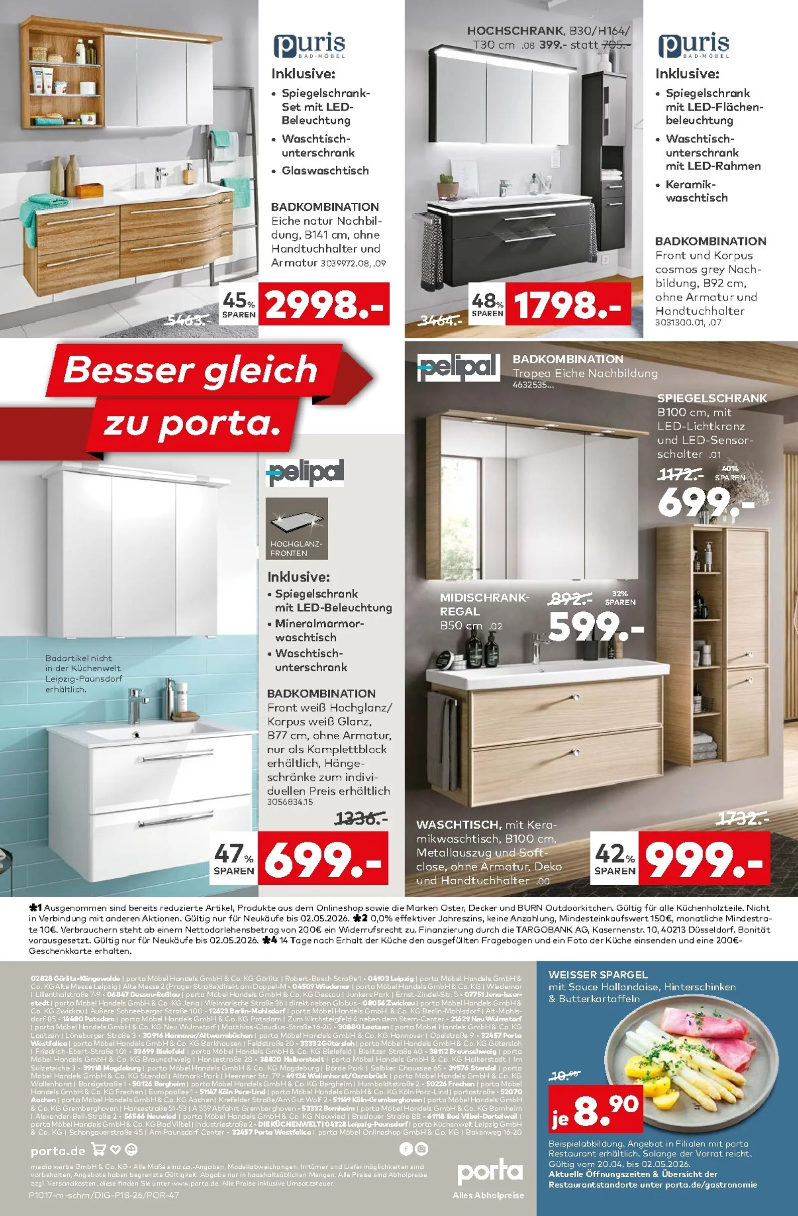 Neben der Küchenwelt bietet Porta auch für das Badezimmer erstklassige Lösungen. Verwandeln Sie Ihr Bad in eine Wellness-Oase mit stilvollen Badkombinationen von Puris und Pelipal. Ein komplettes Set von Pelipal in Hochglanz-Weiß, bestehend aus Spiegelschrank und Waschtisch mit Unterschrank, ist für nur 699 € erhältlich. Diese Woche bietet sich die perfekte Gelegenheit, das eigene Bad mit funktionalen und eleganten Möbeln aufzuwerten und dabei kräftig zu sparen.