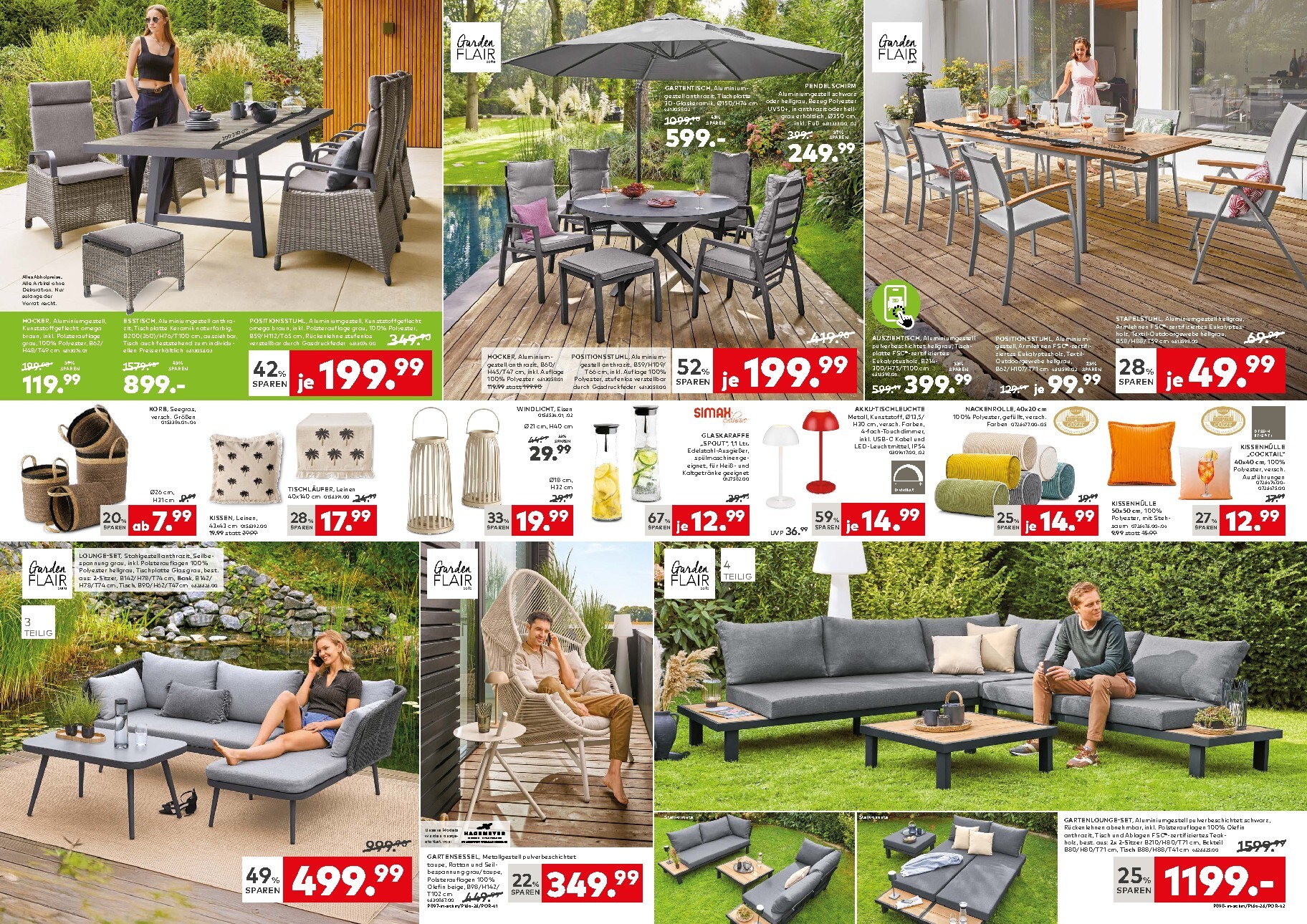 Abgerundet wird das Sortiment durch eine Vielzahl an Accessoires, die für das perfekte Ambiente sorgen. Von dekorativen Kissen und Windlichtern bis hin zu praktischen Solarlampen und Körben ist alles dabei, um die persönliche Note zu unterstreichen. Wer auf der Suche nach einer kompletten Lösung ist, sollte sich das 7-teilige Garten-Set von „Garden Flair“ für 1499,- € statt 1999,- € nicht entgehen lassen. Entdecken Sie die gesamte Vielfalt und die besten Deals im aktuellen Porta Prospekt.