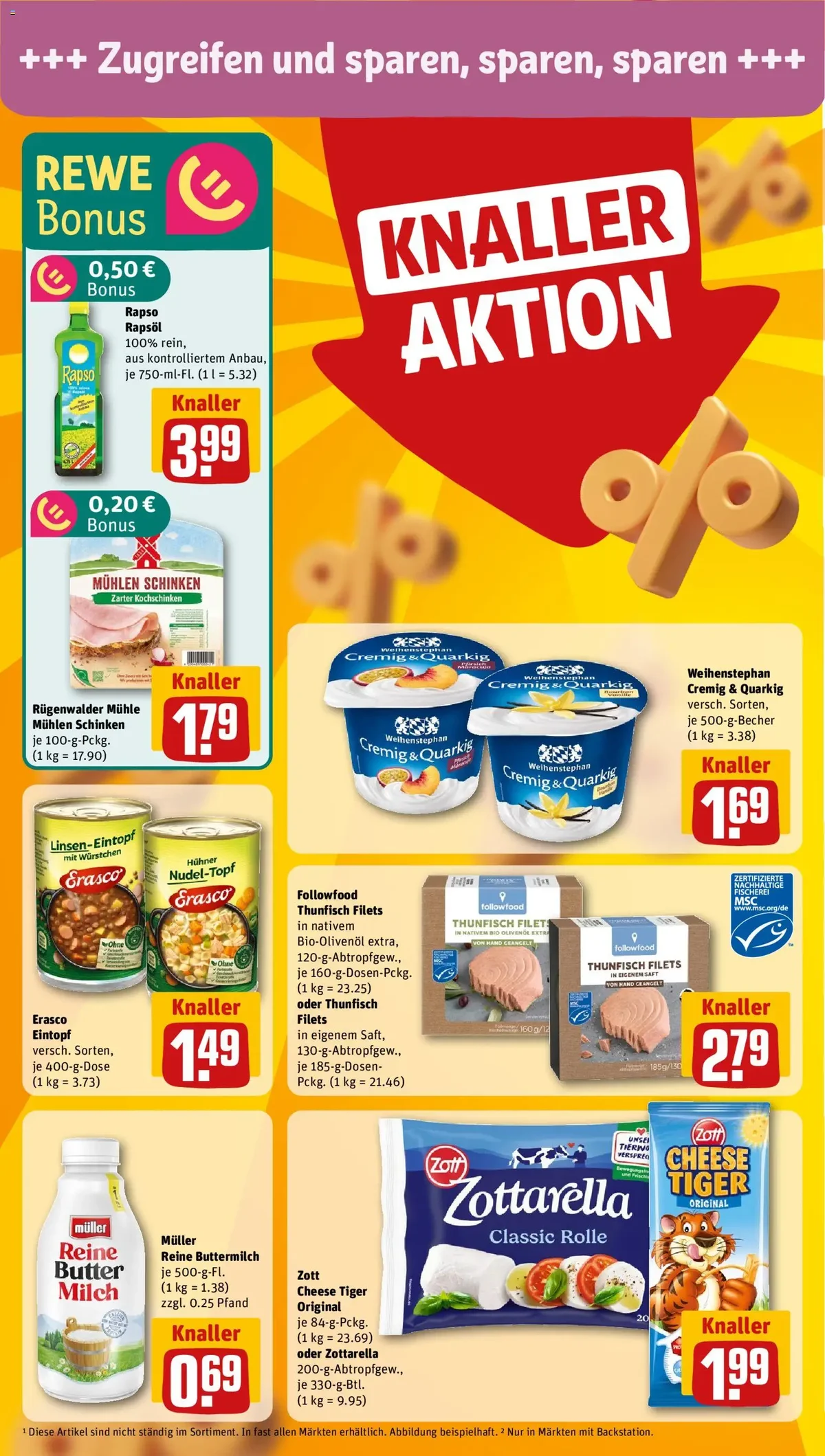 Für den Osterbrunch oder das gemütliche Frühstück finden Sie im Prospekt köstliche Aufstriche wie Mirée Französische Kräuter oder Exquisa Der Sahnige für nur 1.11 Euro. Kaffeeliebhaber freuen sich über den attraktiven Preis für Jacobs Krönung Bohnenkaffee. Auch für den großen Hunger ist gesorgt: Dr. Oetker Ristorante Pizza Salame oder Spinaci gibt es zum Schnäppchenpreis. Wer es lieber frisch mag, greift zu den knackigen Roten Tafeläpfeln »Cripps Pink« aus Frankreich. Und für den Durst? Erfrischende Getränke wie Coca-Cola, Fanta oder Sprite sowie Beck's Pils sind ebenfalls stark reduziert.