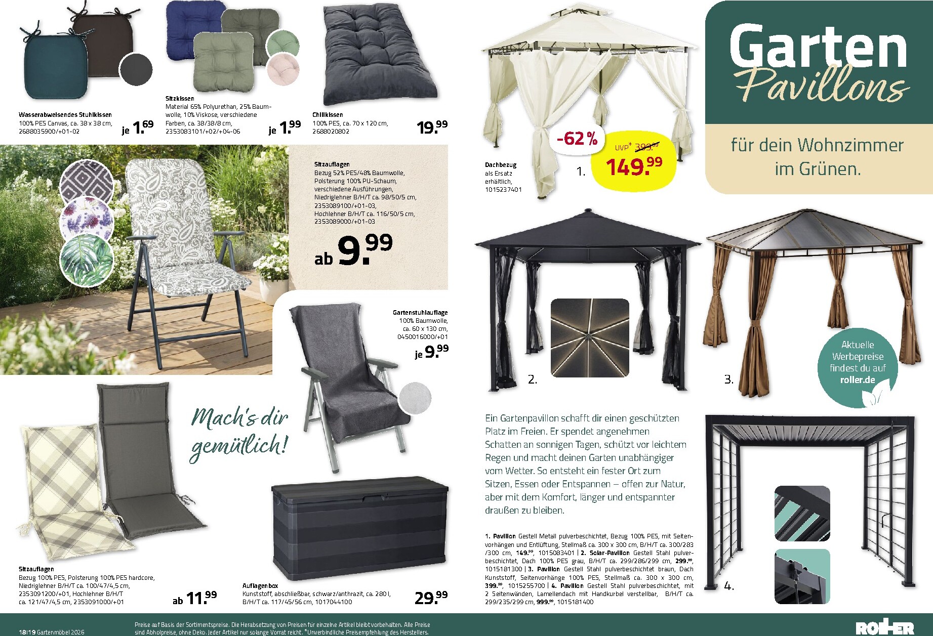 Der Sommer steht vor der Tür und Roller läutet die Saison mit der großen „Gartenliebe“-Aktion ein! Bis zum 28. September 2026 haben Sie die Chance, Ihren Außenbereich in eine wahre Wohlfühloase zu verwandeln. Die aktuellen Angebote bieten alles, was das Herz begehrt, von gemütlichen Loungemöbeln bis hin zu praktischen Pavillons. Im neuen Prospekt finden Sie die besten Roller Prospekt 28.09.2026 zum Blättern für jeden Geschmack und jedes Budget. Schon auf der Titelseite lockt ein eleganter Pavillon für nur 399,99 €, der an heißen Tagen wohltuenden Schatten spendet, sowie eine großzügige Loungegruppe für 599,99 €, die zu geselligen Runden einlädt.