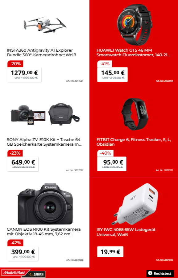 Ein absolutes Highlight auf der Titelseite ist das SAMSUNG Galaxy Book4 Notebook für nur 399 €, eine Ersparnis von 50 %. Auch Heimkino-Fans kommen auf ihre Kosten: Der LG OLED evo TV mit 55 Zoll ist um unglaubliche 58 % reduziert und kostet nur noch 999 €. Für einen sauberen Haushalt sorgt der MOVA V50 Ultra Complete White Saugroboter, der von 1199 € auf 729 € gesenkt wurde. Familien freuen sich über das Toniebox Fullplay-Set, bei dem es zwei Spiele gratis dazu gibt – perfekt für das Osternest.