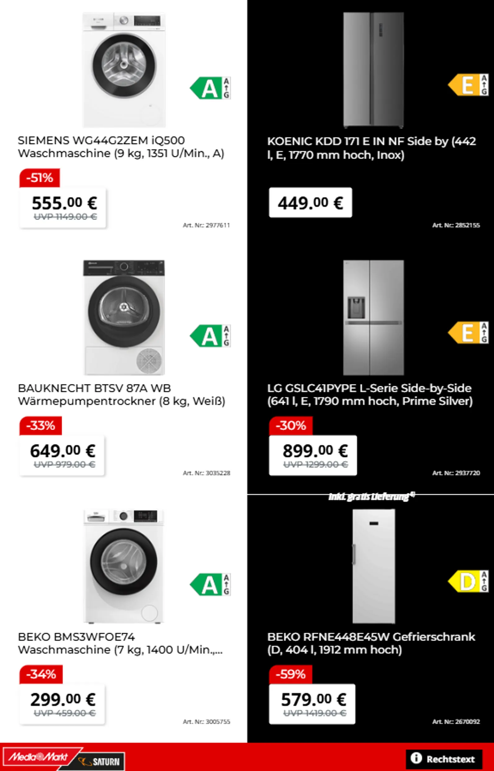 Doch die Angebote beschränken sich nicht nur auf Fernseher, auch im Haushaltsbereich winken starke Preisnachlässe. Genießen Sie perfekten Kaffee mit dem SIEMENS EQ700 Kaffeevollautomaten, der um 48 % auf 899 € reduziert ist. Effizienz für den Alltag bieten die AEG Waschmaschine für nur 449 € oder der ECOVACS Deebot Saugroboter für 799 €. Diese Deals modernisieren den Haushalt clever und kostengünstig.