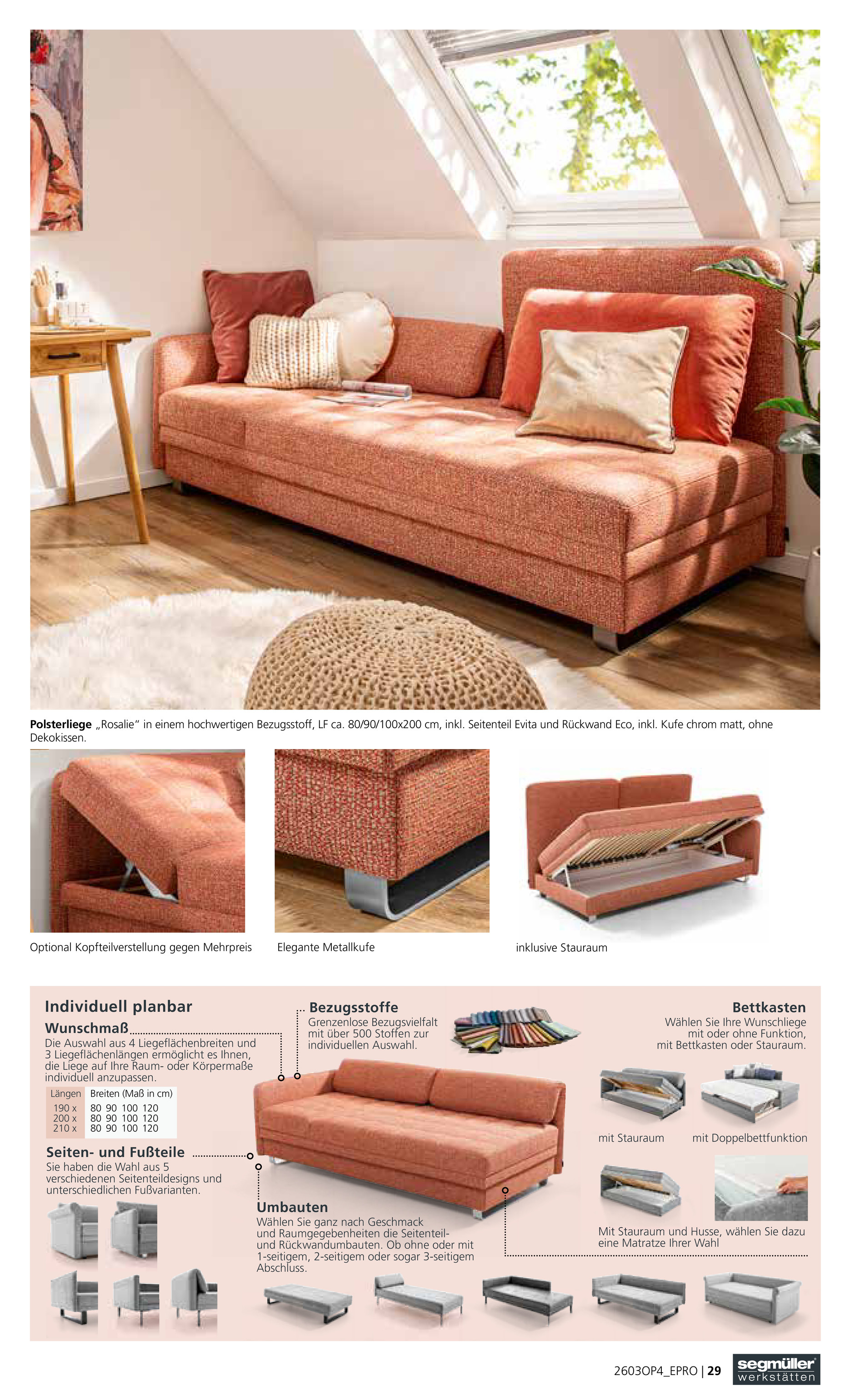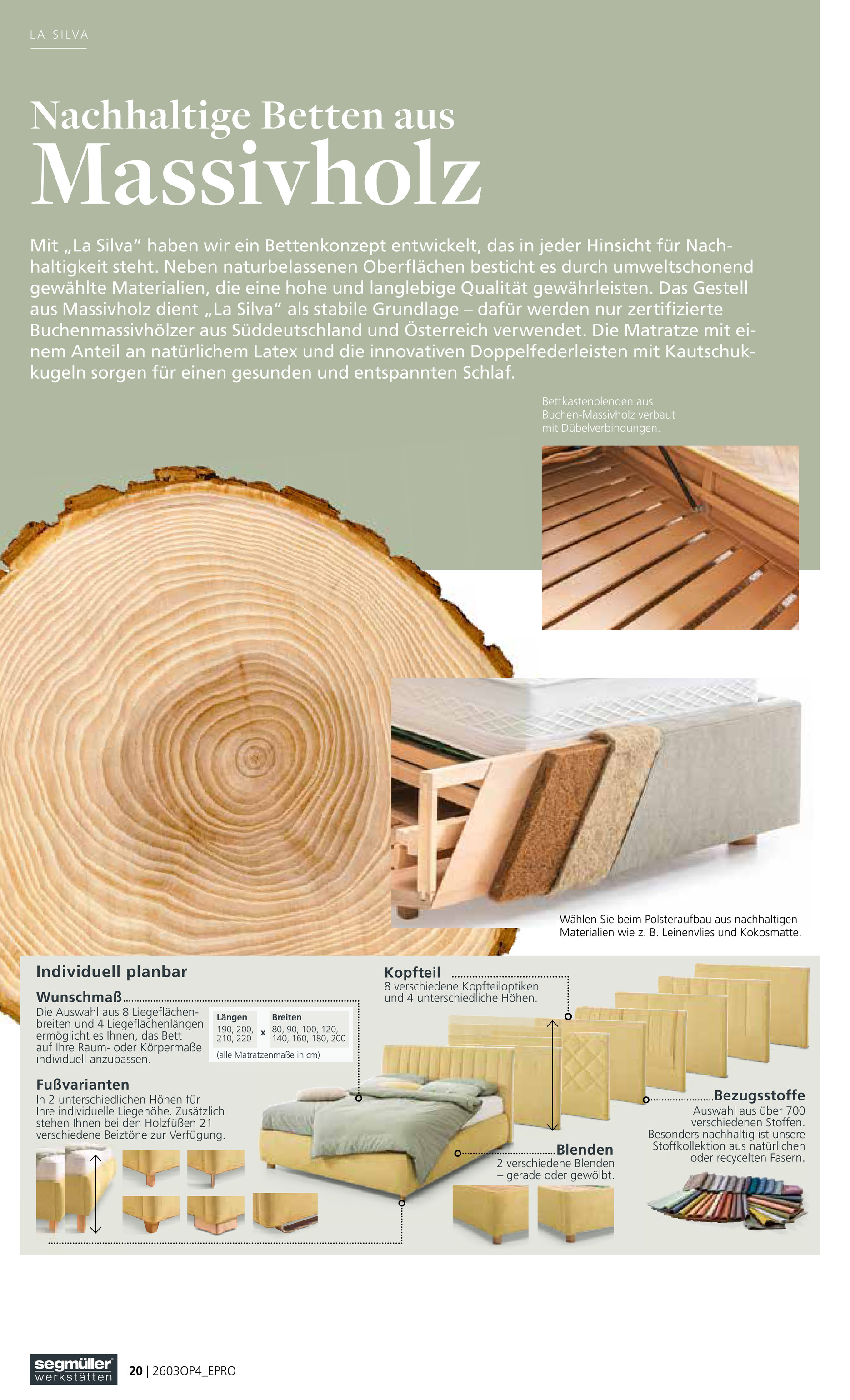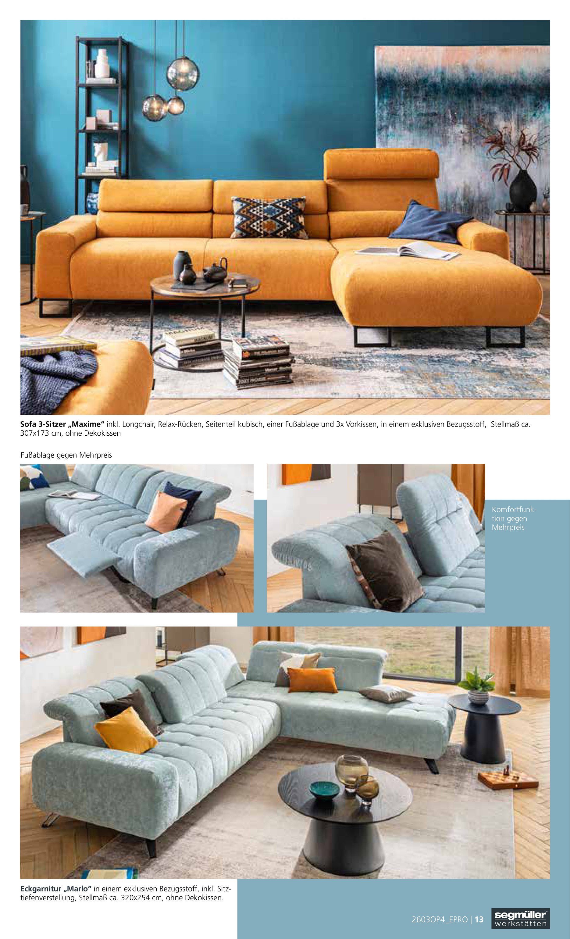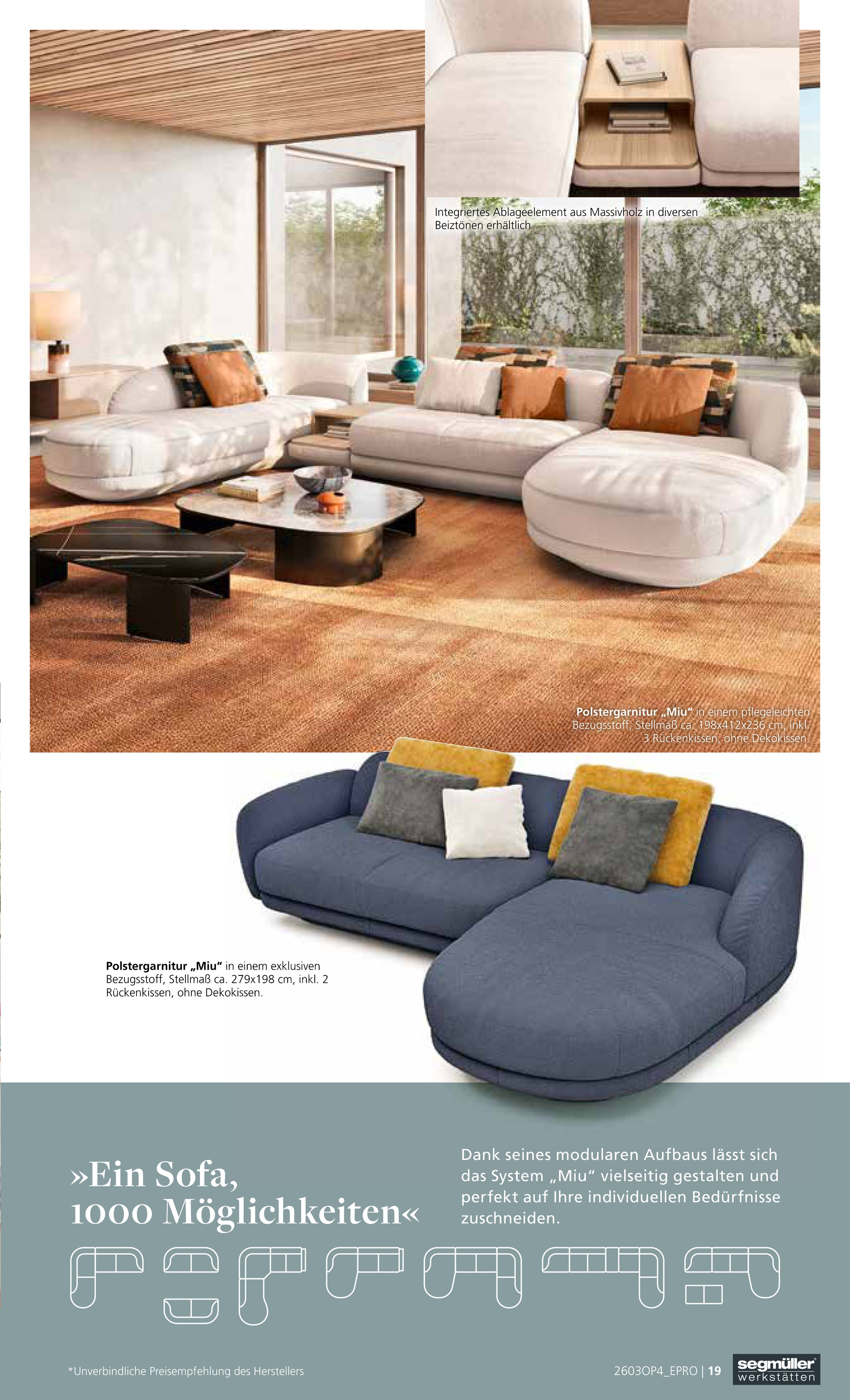 Ein Highlight auf dem Titelblatt ist das elegante 3-Sitzer-Sofa „Denise“, das mit seinem Stellmaß von ca. 281×192 cm und einem Gestell aus Buche-Massivholz überzeugt. Doch das ist nur der Anfang. Der Prospekt widmet sich intensiv den Themen „Gesundes Sitzen mit System Transforma“ und „Nachhaltige Betten“, was den Fokus auf Ergonomie und Wohlbefinden unterstreicht. Segmüller unterstreicht sein Qualitätsversprechen mit einer beeindruckenden 10-Jahres-Garantie auf viele Polstermöbel und 5 Jahre Garantie auf Bezugsstoffe und Leder, sodass Sie sicher sein können, eine nachhaltige Investition zu tätigen.