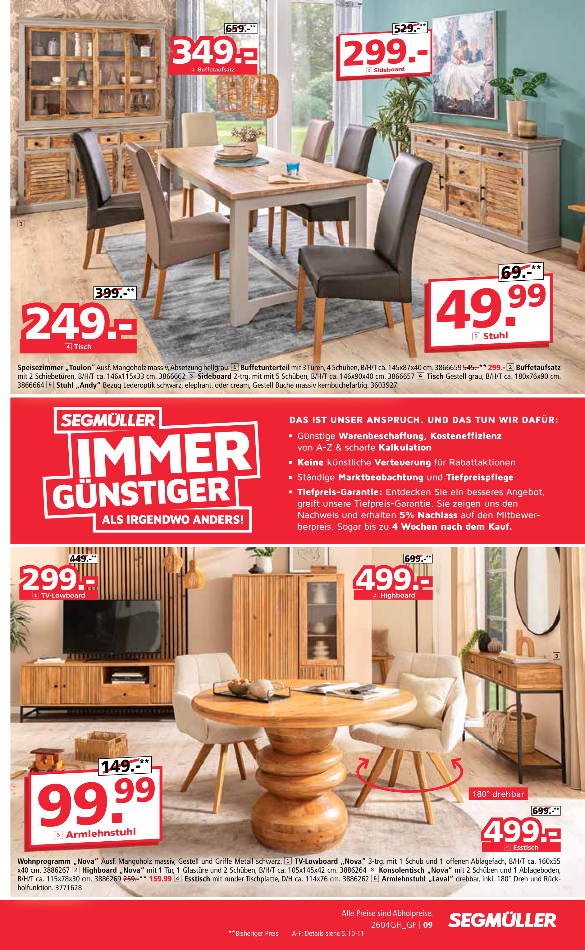 Auch im Megastore, dem Mitnahmemarkt von Segmüller, warten unzählige Schnäppchen. Richten Sie Ihr Esszimmer neu ein mit dem Esstisch „Anori“ für nur 249 € statt 349 € oder entscheiden Sie sich für den Stuhl „Vallejo“ für sensationelle 29,99 €. Diese und viele weitere Artikel sind sofort verfügbar, sodass Sie Ihre neuen Möbel direkt mit nach Hause nehmen können. Stöbern Sie durch das riesige Sortiment und finden Sie die perfekten Stücke, die Sie im aktuellen Segmüller Prospekt entdecken können.
