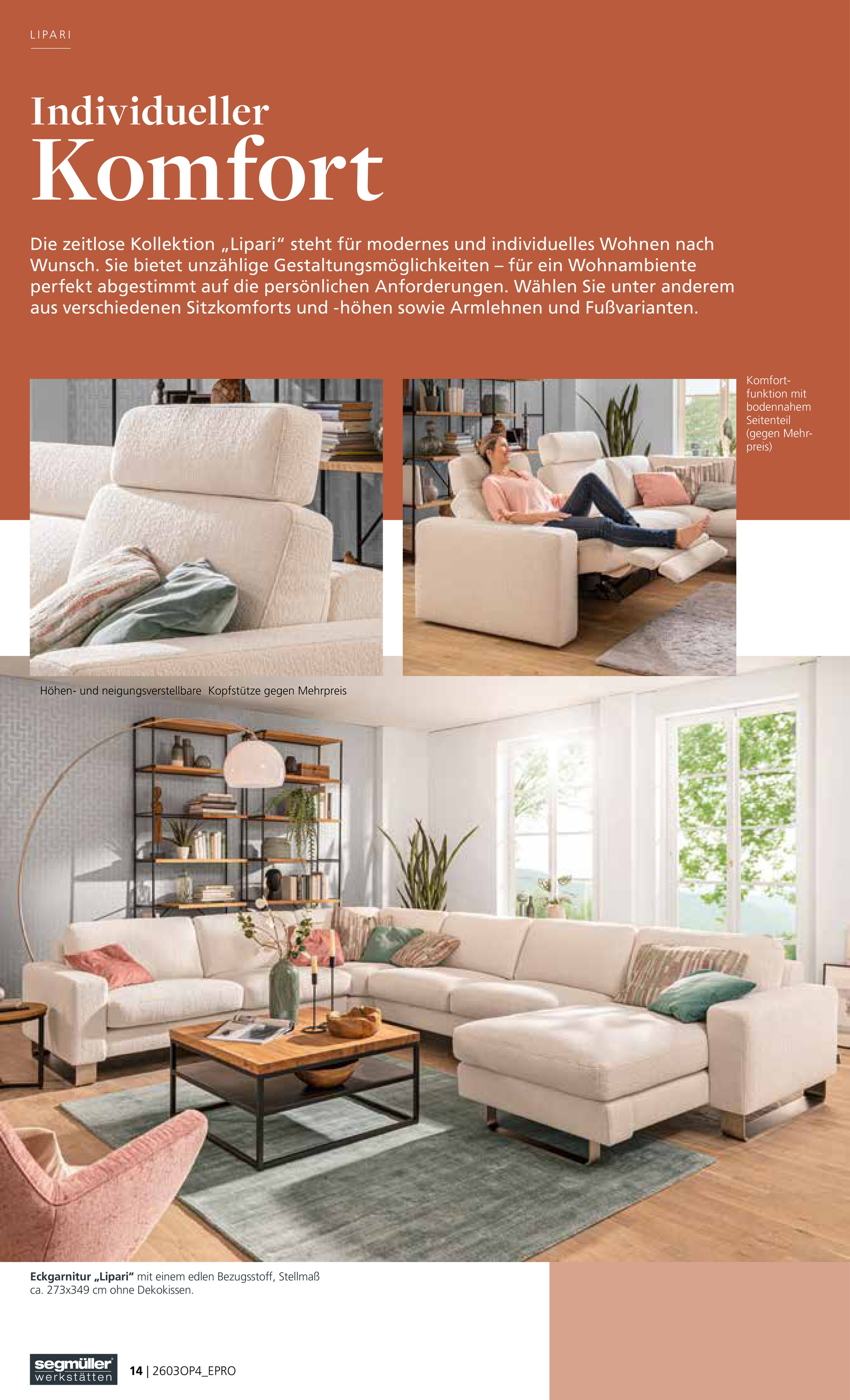 Die Stärke von Segmüller liegt in der individuellen Planbarkeit der Möbel. Die formschönen Modelle sind modular aufgebaut und lassen sich perfekt an persönliche Bedürfnisse und räumliche Gegebenheiten anpassen. Ob es um das Sofa „Denise“ geht oder um das innovative „System Transforma“ für gesundes Sitzen, die Vielfalt an Elementen, Funktionen und Designs ist enorm. Der neue Segmüller Prospekt 30.04.2026 Werbung präsentiert eine breite Palette an Konfigurationsmöglichkeiten. Kunden können aus verschiedenen Armlehnen, Fußvarianten, Sitztiefen sowie einer riesigen Auswahl an Stoff- und Lederarten in unzähligen Farben wählen, um ihr Traummöbel zu gestalten.