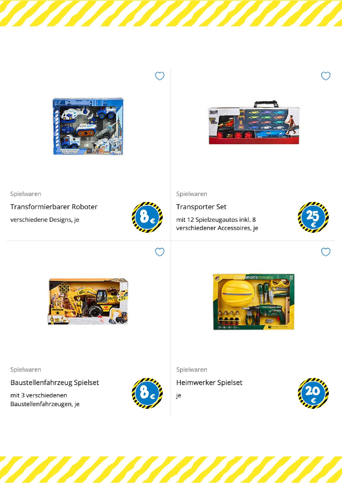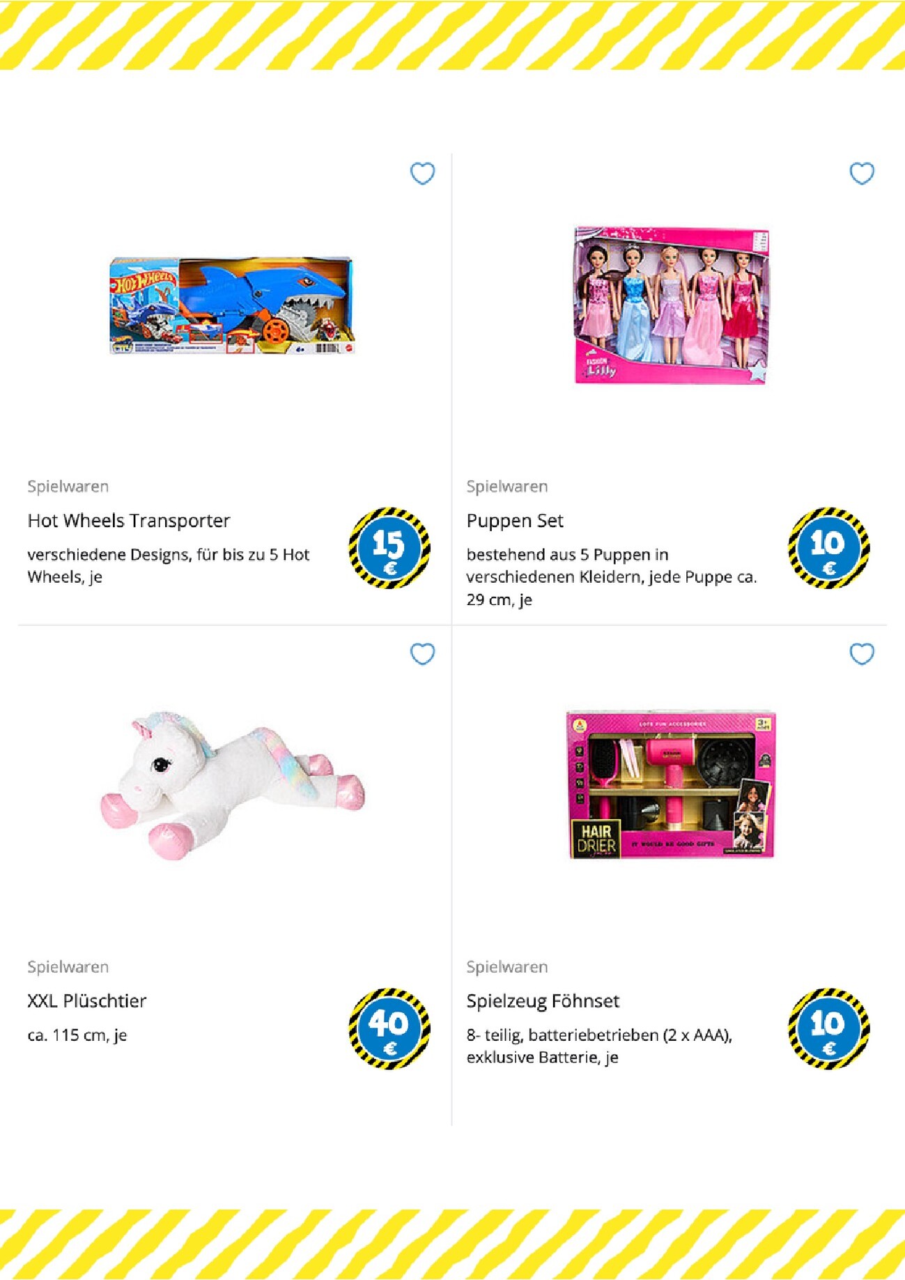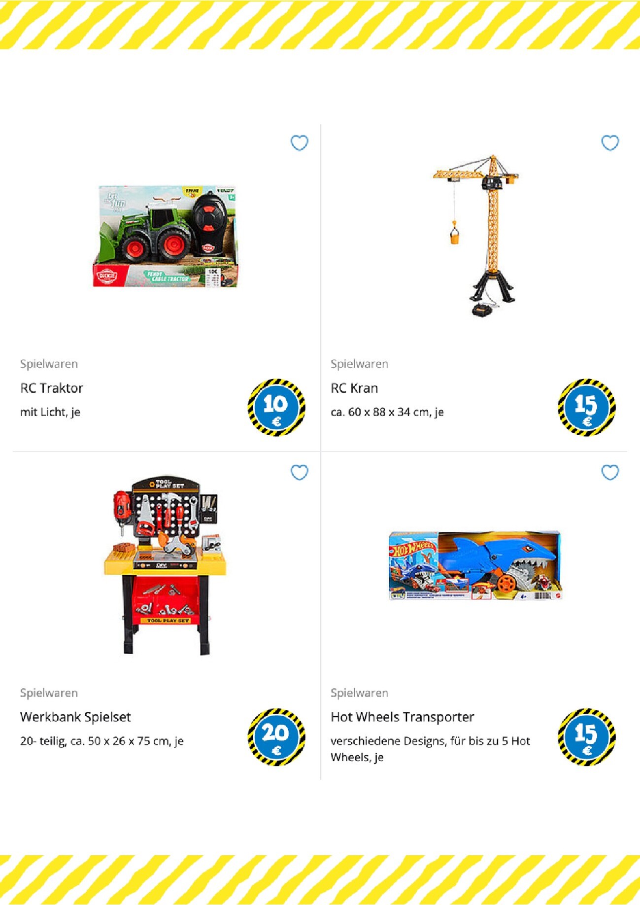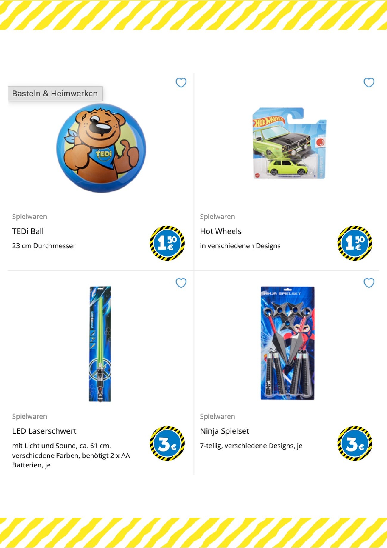 Das Sortiment wird durch weitere tolle Artikel abgerundet. Musikalische Talente können sich an der Spielzeug-Gitarre für 7 € versuchen, während kleine Handwerker mit dem 20-teiligen Werkbank-Spielset für 20 € ihre Fähigkeiten unter Beweis stellen. Für Autofans ist der Hot Wheels Transporter, der bis zu 5 Fahrzeuge aufnehmen kann, für 15 € ein Muss. Entdecken Sie all diese und viele weitere Angebote im aktuellen TEDi Prospekt.