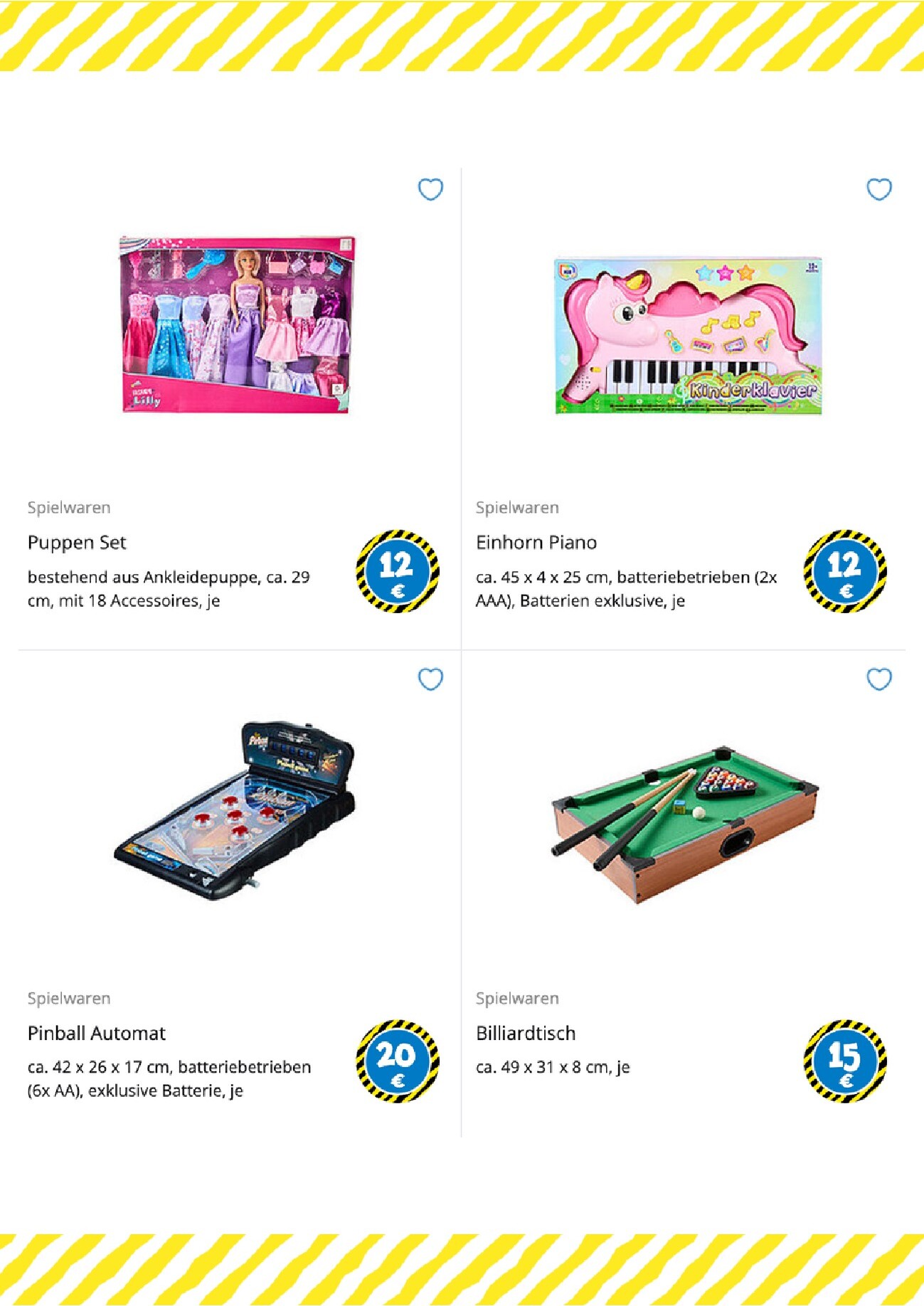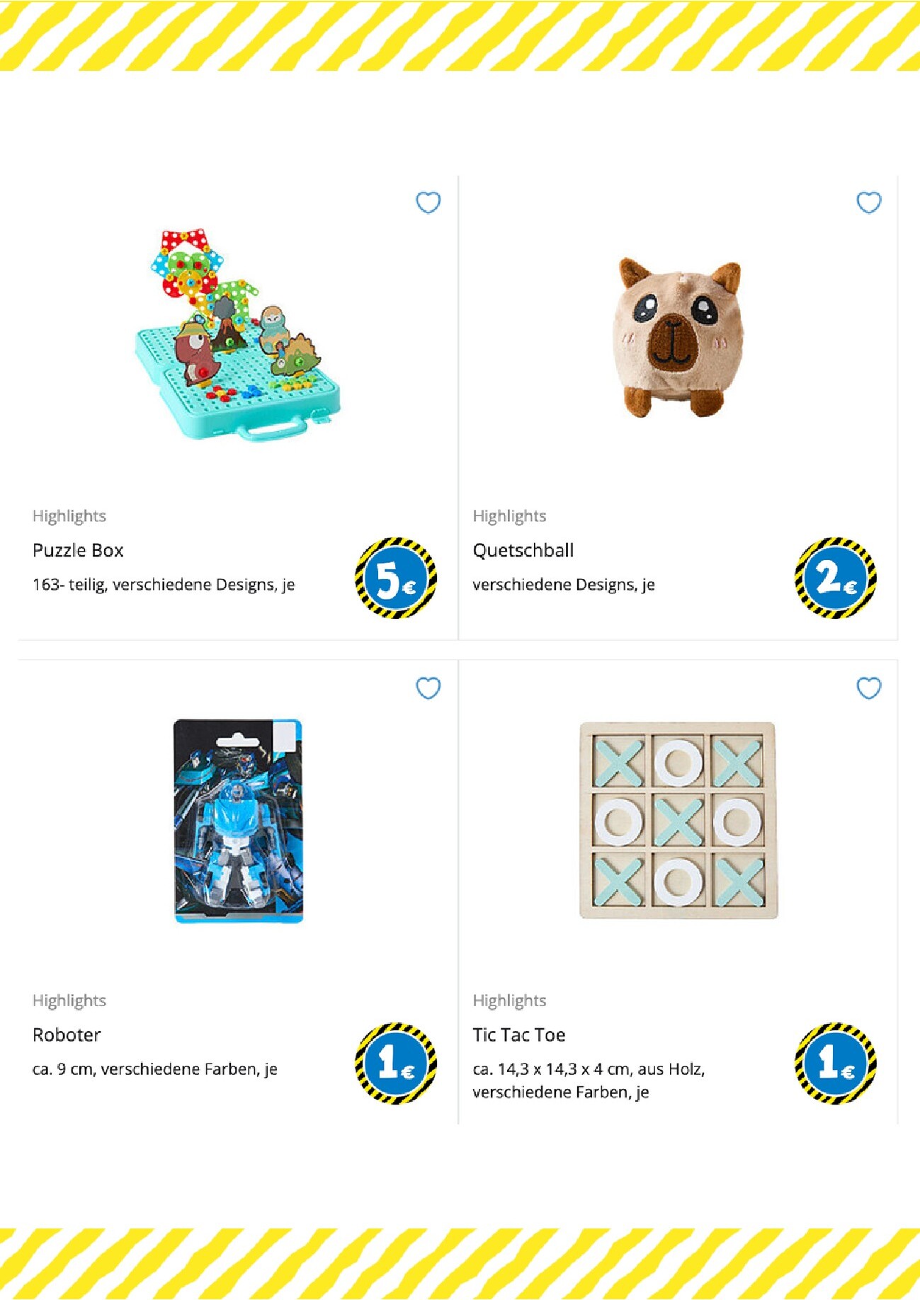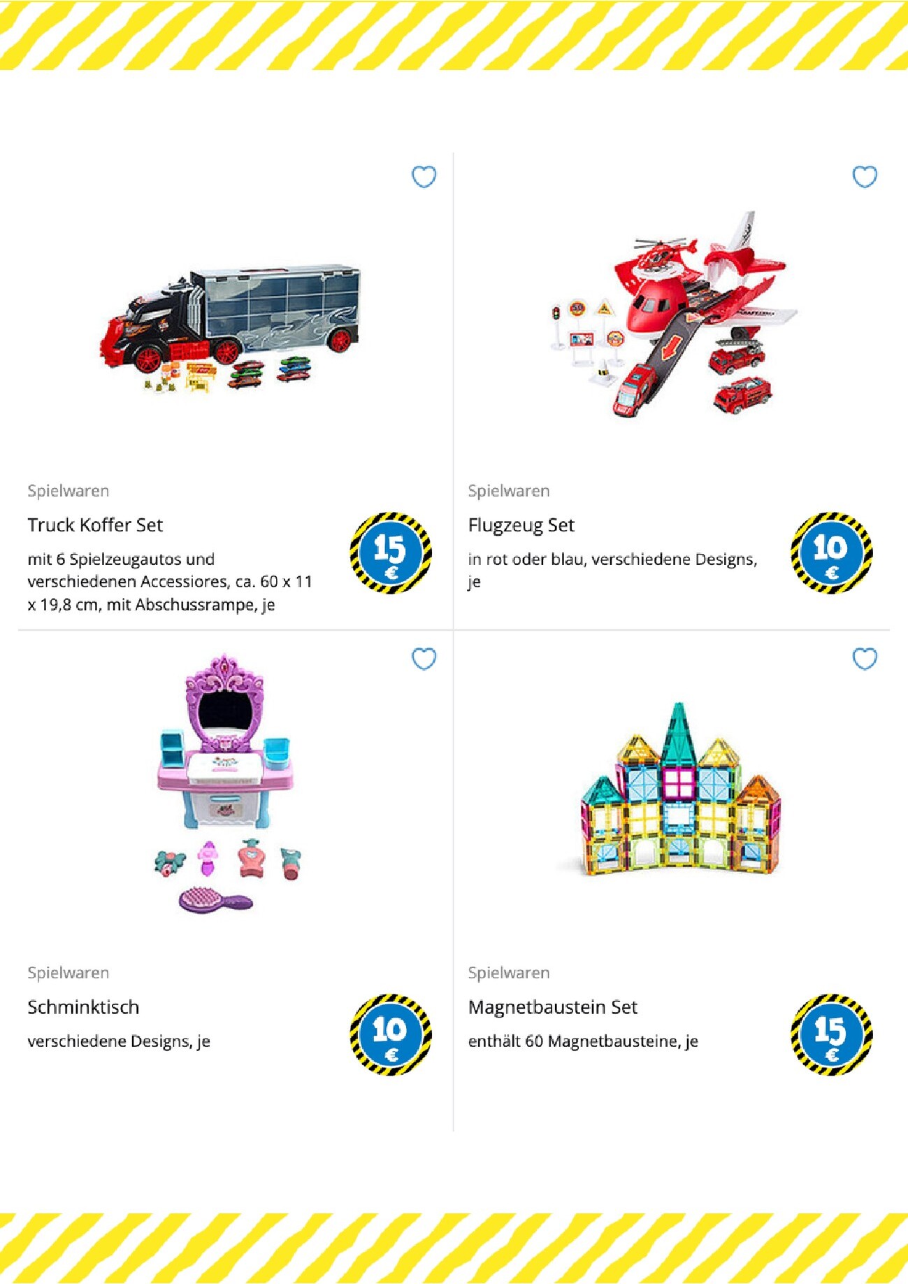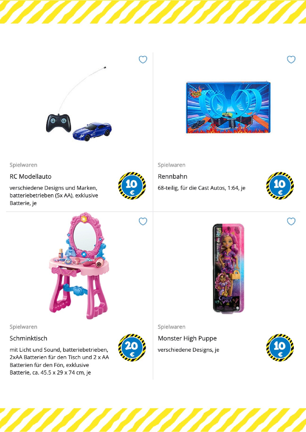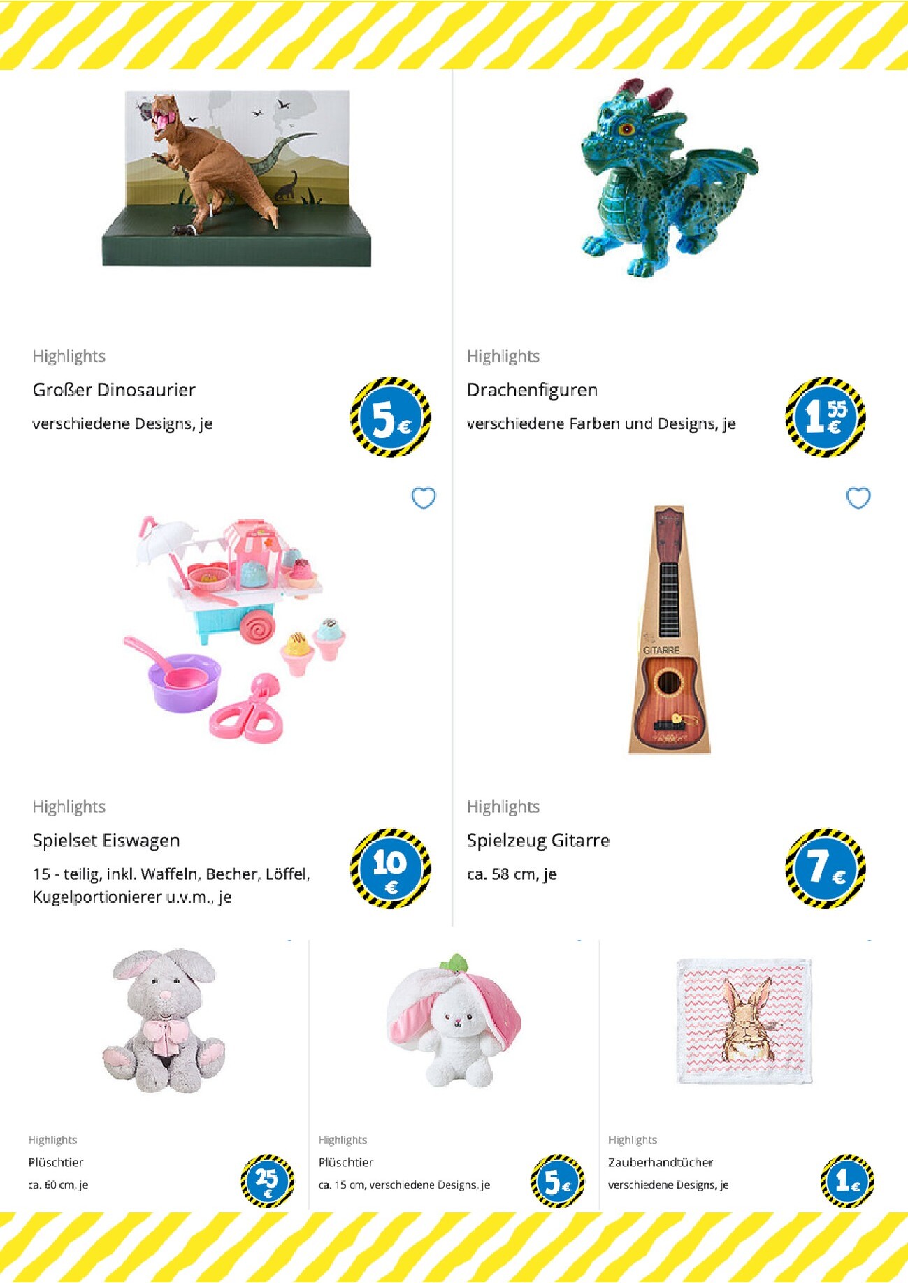 Das Sortiment wird durch weitere tolle Artikel abgerundet. Musikalische Talente können sich an der Spielzeug-Gitarre für 7 € versuchen, während kleine Handwerker mit dem 20-teiligen Werkbank-Spielset für 20 € ihre Fähigkeiten unter Beweis stellen. Für Autofans ist der Hot Wheels Transporter, der bis zu 5 Fahrzeuge aufnehmen kann, für 15 € ein Muss. Entdecken Sie all diese und viele weitere Angebote im aktuellen TEDi Prospekt.
