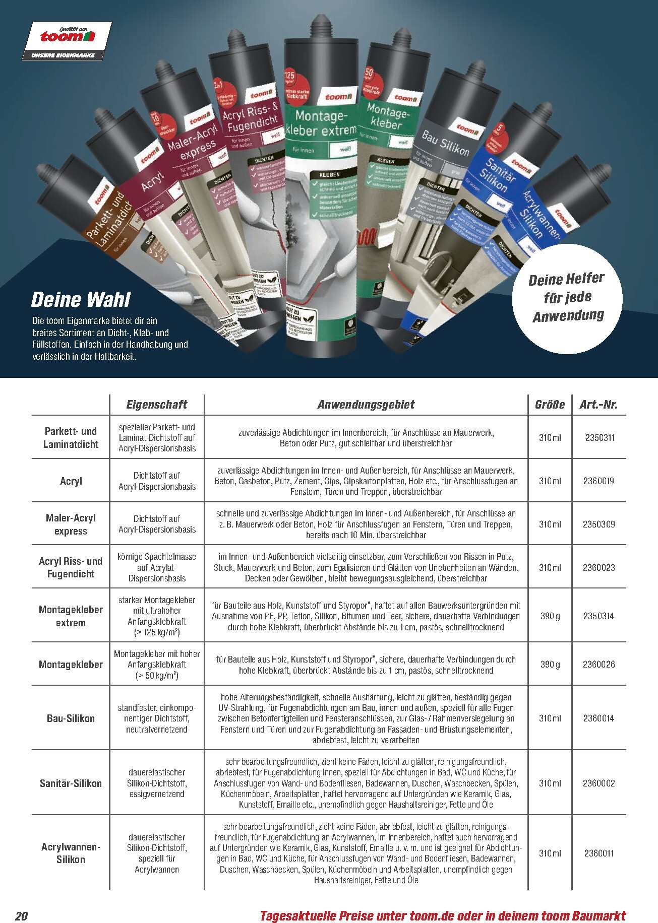 Dieser Katalog ist somit mehr als nur eine Produktübersicht – er ist ein unverzichtbarer Ratgeber für alle, die Wert auf langlebige Materialien und eine nachhaltige Bauweise legen. Planen Sie Ihr nächstes Projekt mit der Sicherheit, die besten Produkte zur Hand zu haben. Alle detaillierten Informationen zu den Artikeln, Preisen und Verfügbarkeiten finden Sie direkt im neuen toom Prospekt.
