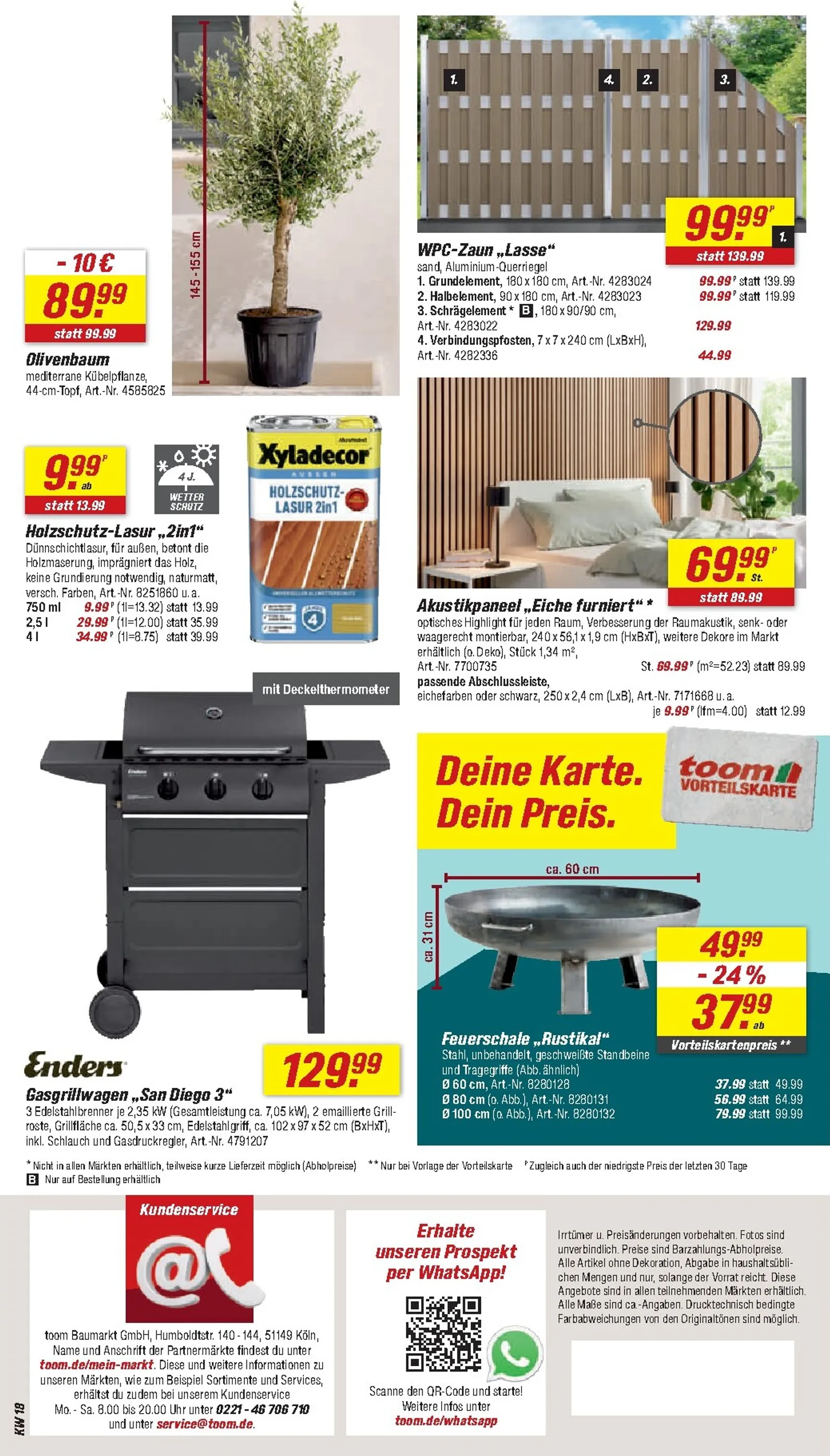 Neben Pflanzen gibt es auch alles für gemütliche Abende im Freien. Der Gasgrillwagen „San Diego 3“ von Enders ist für nur 129,99 € erhältlich und perfekt für die Grillsaison. Wer es rustikaler mag, findet in der Feuerschale „Rustikal“ ab 37,99 € das richtige Ambiente für laue Sommernächte. Abgerundet wird das Sortiment durch praktische Artikel wie Holzschutz-Lasuren und dekorative Akustikpaneele für den Innenbereich. Verpassen Sie diese tollen Deals nicht und werfen Sie einen Blick in den aktuellen toom Prospekt.