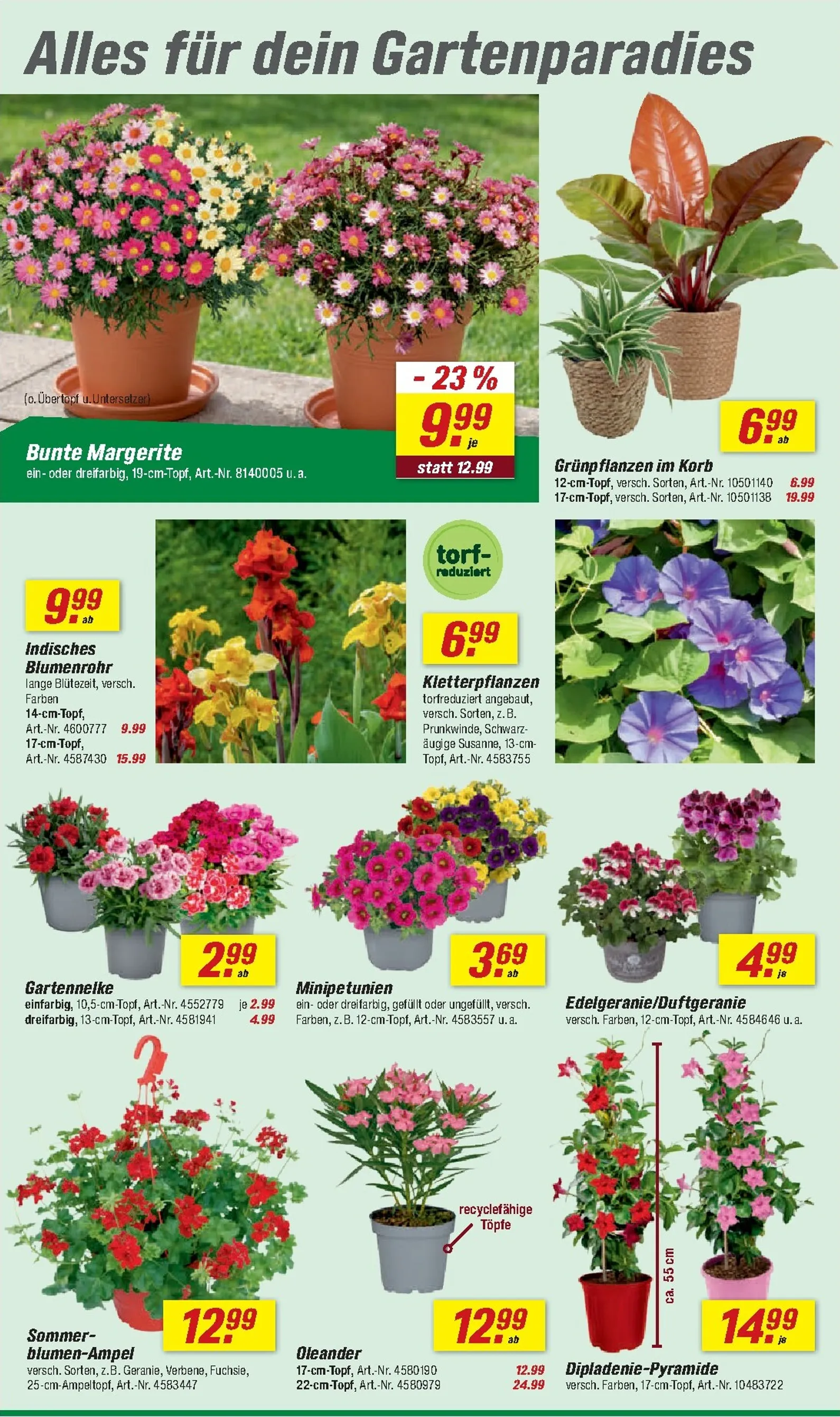Für alle mit einem grünen Daumen hält der Prospekt eine riesige Auswahl an Pflanzen bereit. Der __SEO_TITLE__ präsentiert veredeltes Gemüse wie Tomaten und Gurken ab 4,99 €, Tomatenpflanzen im 10er-Pack für nur 0,99 € pro Stück und eine Vielzahl an Sommerblumen wie Petunien, Geranien und Fuchsien zu unschlagbaren Preisen. Auch der XL-Schopflavendel für 25,99 € oder ein mediterraner Olivenbaum für 89,99 € bringen Urlaubsflair in den eigenen Garten. Diese Angebote ermöglichen es, Balkon und Garten in ein farbenfrohes Paradies zu verwandeln.