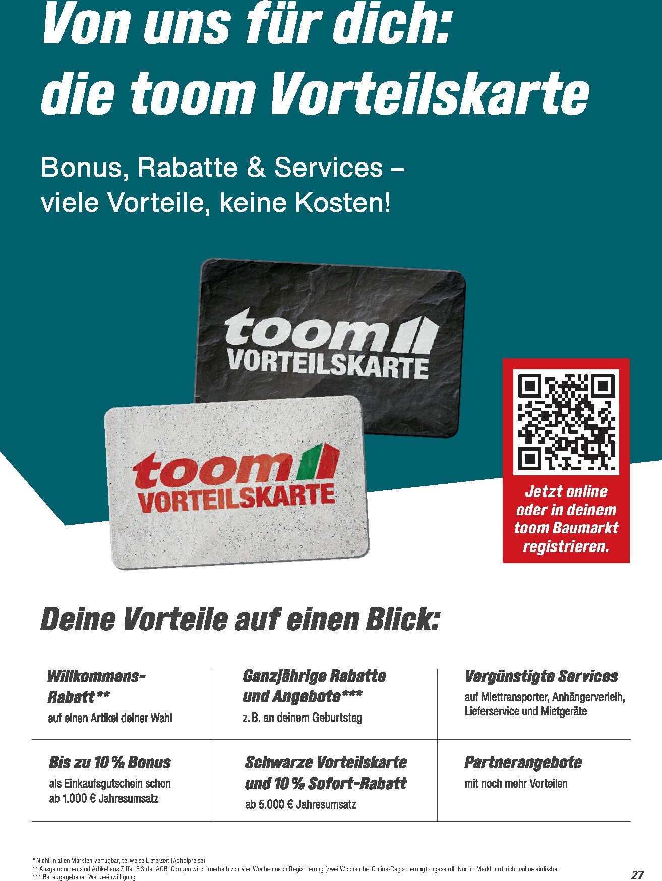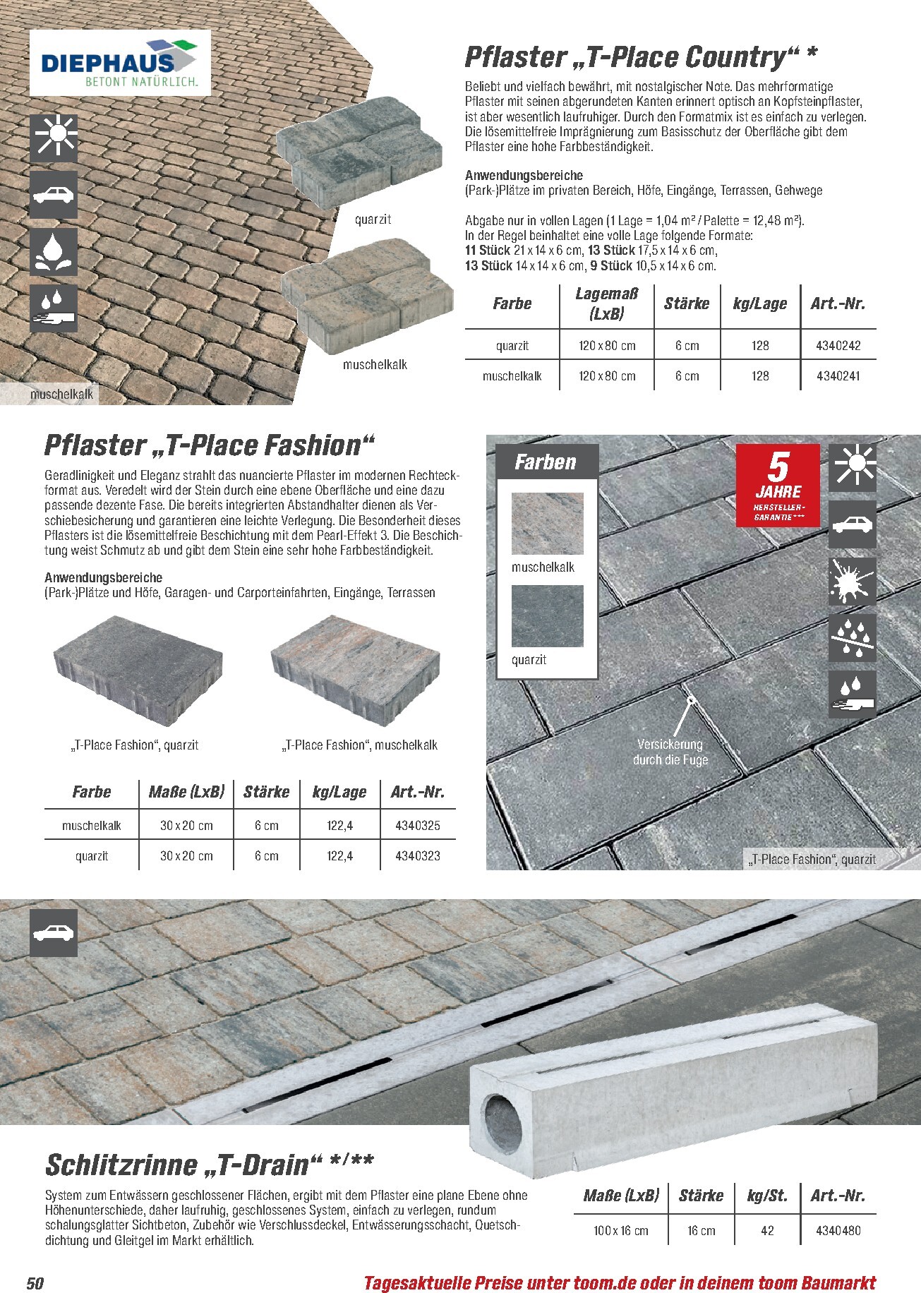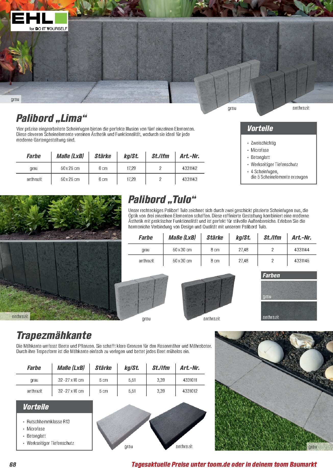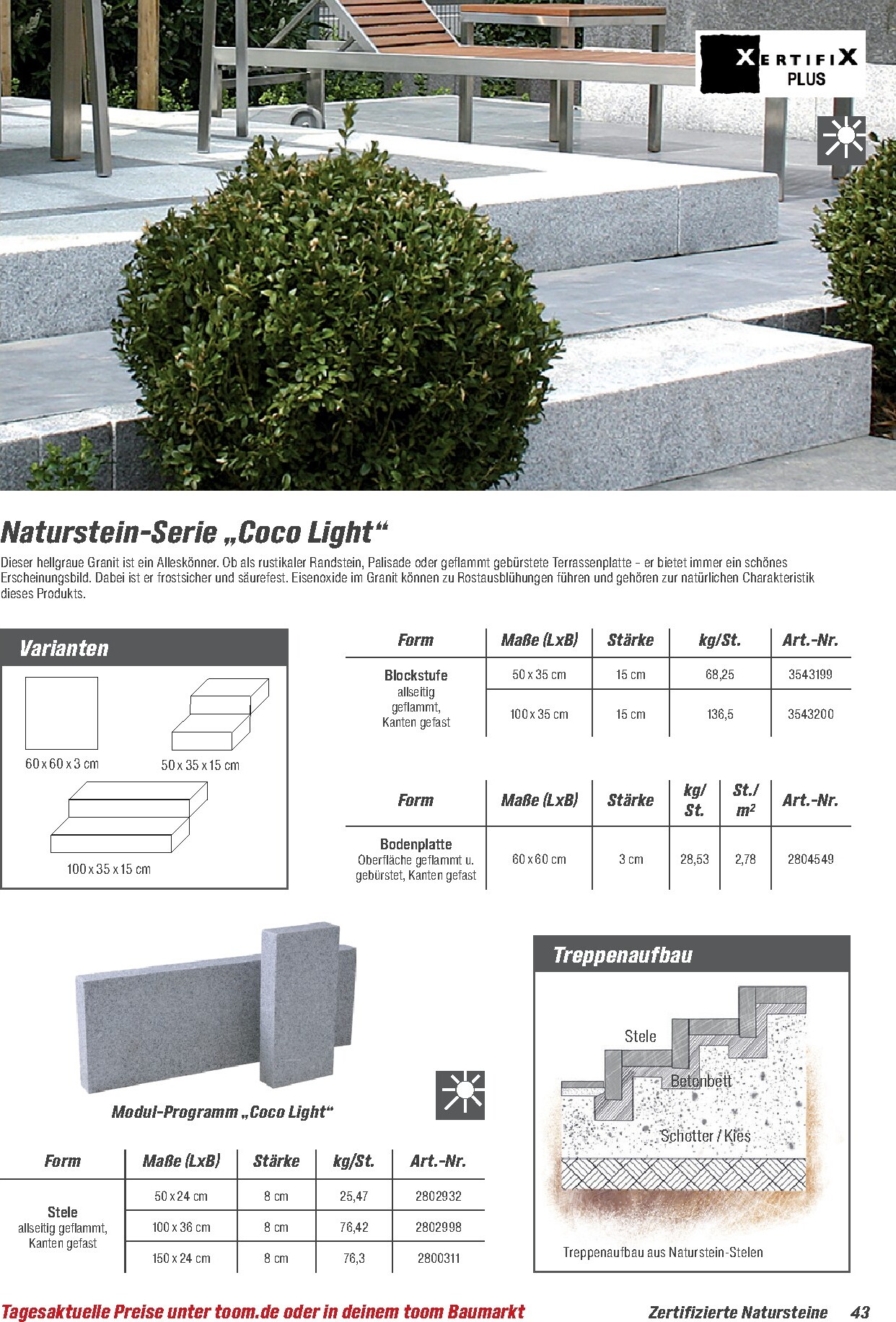 Der neue toom Katalog für Gartenbaustoffe ist da und inspiriert zu neuen Projekten unter freiem Himmel. Ob Sie eine moderne Terrasse, einen rustikalen Weg oder eine stilvolle Einfassung planen, hier finden Sie alles, was Sie für die Umsetzung benötigen. Mit dem toom Prospekt Heute 2026 Gartenbau-stoffe zum Blättern entdecken Sie eine riesige Auswahl an Materialien und Ideen, um Ihren Außenbereich in eine persönliche Wohlfühloase zu verwandeln. Toom wurde zudem zum 10. Mal in Folge als Preissieger für sein hervorragendes Preis-Leistungs-Verhältnis ausgezeichnet, was Ihnen die Sicherheit gibt, hochwertige Produkte zu fairen Konditionen zu erhalten. Von Terrassenplatten über Pflastersteine bis hin zu Mauersystemen – die Qualität und Vielfalt werden Sie überzeugen.