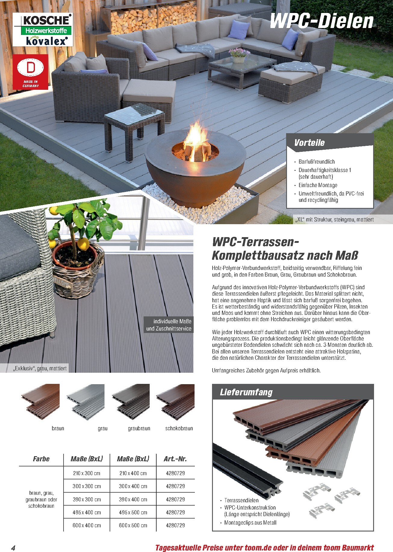 Ein zentrales Element vieler Gärten ist die Terrasse. Der Katalog präsentiert eine breite Palette an Terrassenplatten, von klassischen Betonplatten bis hin zu edlen Keramik- und Natursteinplatten. Auch WPC-Dielen, die für ihre Langlebigkeit und Pflegeleichtigkeit bekannt sind, werden ausführlich vorgestellt. Jedes Material hat seine eigenen Vorzüge und ermöglicht eine individuelle Gestaltung, die perfekt zu Ihrem Haus und Stil passt. Lassen Sie sich von den Anwendungsbeispielen inspirieren und finden Sie den idealen Bodenbelag für Ihren neuen Lieblingsplatz im Freien.