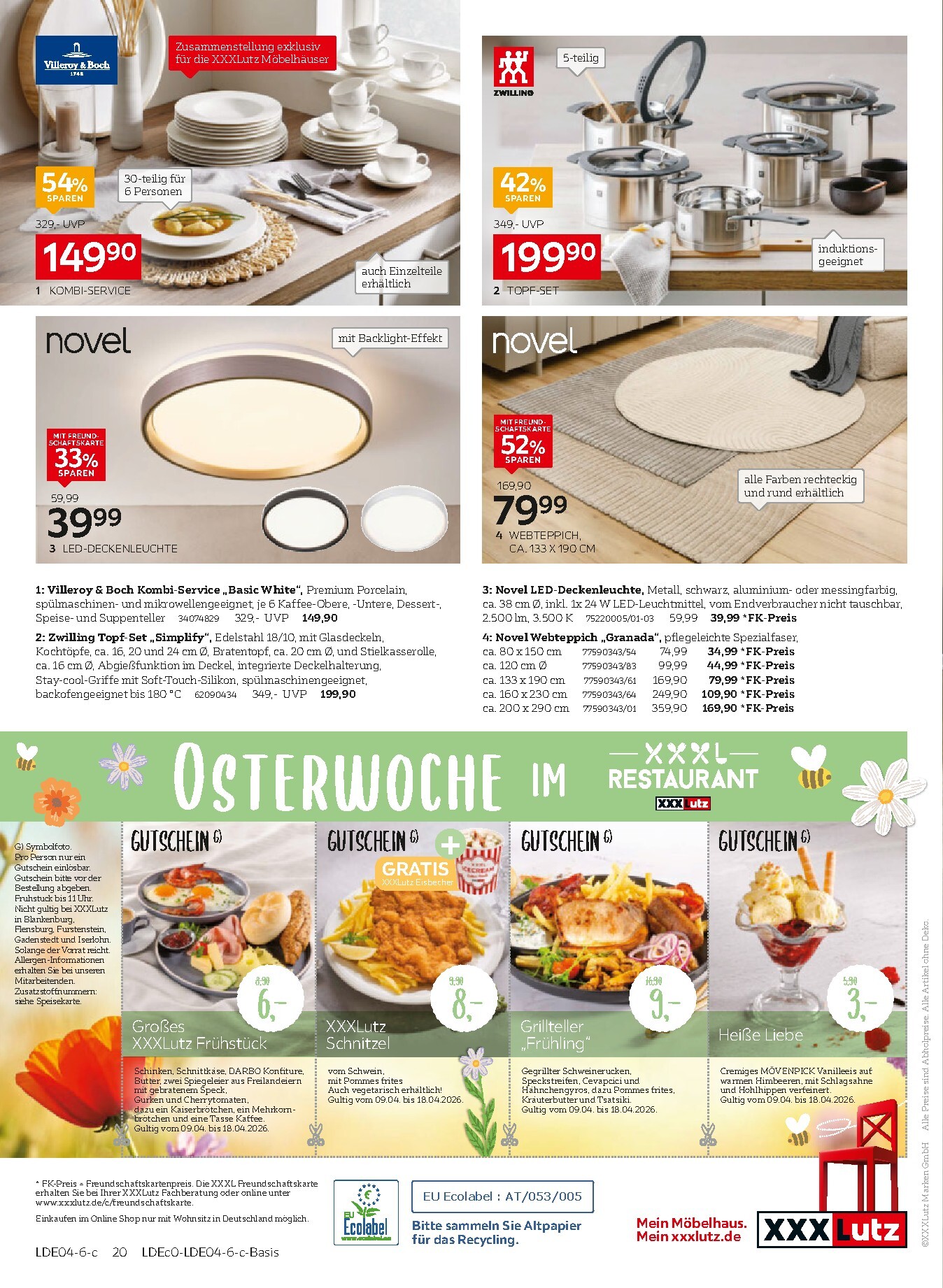 Abgerundet wird das Einkaufserlebnis durch die ‚Osterwoche im XXXL Restaurant‘, die mit köstlichen Angeboten wie dem großen XXXLutz Frühstück für 6 € oder dem Grillteller für 9 € lockt. Diese kulinarischen Highlights sind vom 09.04. bis zum 18.04.2026 gültig und bieten die perfekte Stärkung während des Shopping-Trips. Verpassen Sie diese Chance nicht und entdecken Sie alle Angebote im aktuellen XXXLutz Prospekt.