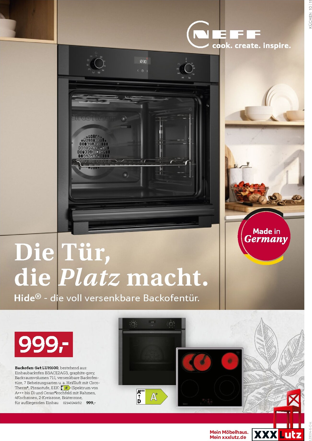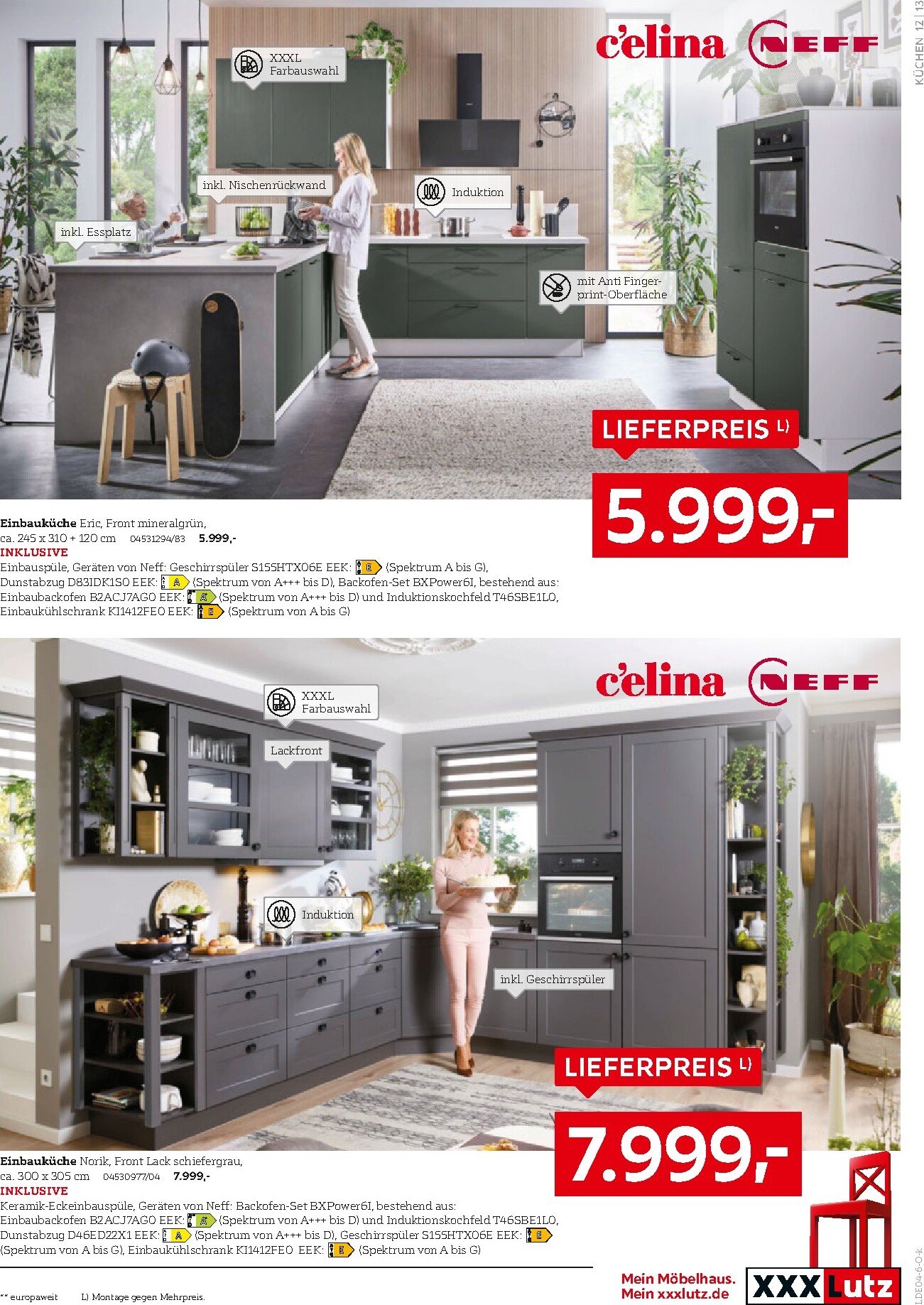 XXXLutz untermauert seinen Ruf als die Nummer 1 bei Küchen mit einer neuen, sensationellen Angebotswelle. Wer von einer neuen, modernen Küche träumt, findet jetzt die perfekte Gelegenheit, diesen Traum zu verwirklichen. Die aktuelle Aktion, die unter dem Motto XXXLutz Prospekt 11.04.2026 – 25.04.2026 Aktuelle Angebote läuft, bietet eine beeindruckende Auswahl an planbaren Einbauküchen von renommierten Marken wie Siemens und Novel. Von trendigen Farben wie Thymianfarbig bis hin zu elegantem Hochglanz-Weiß – die Vielfalt ist riesig und deckt jeden Geschmack ab. XXXLutz kombiniert dabei stilvolles Design mit hochwertiger Technik und das zu Preisen, die begeistern.