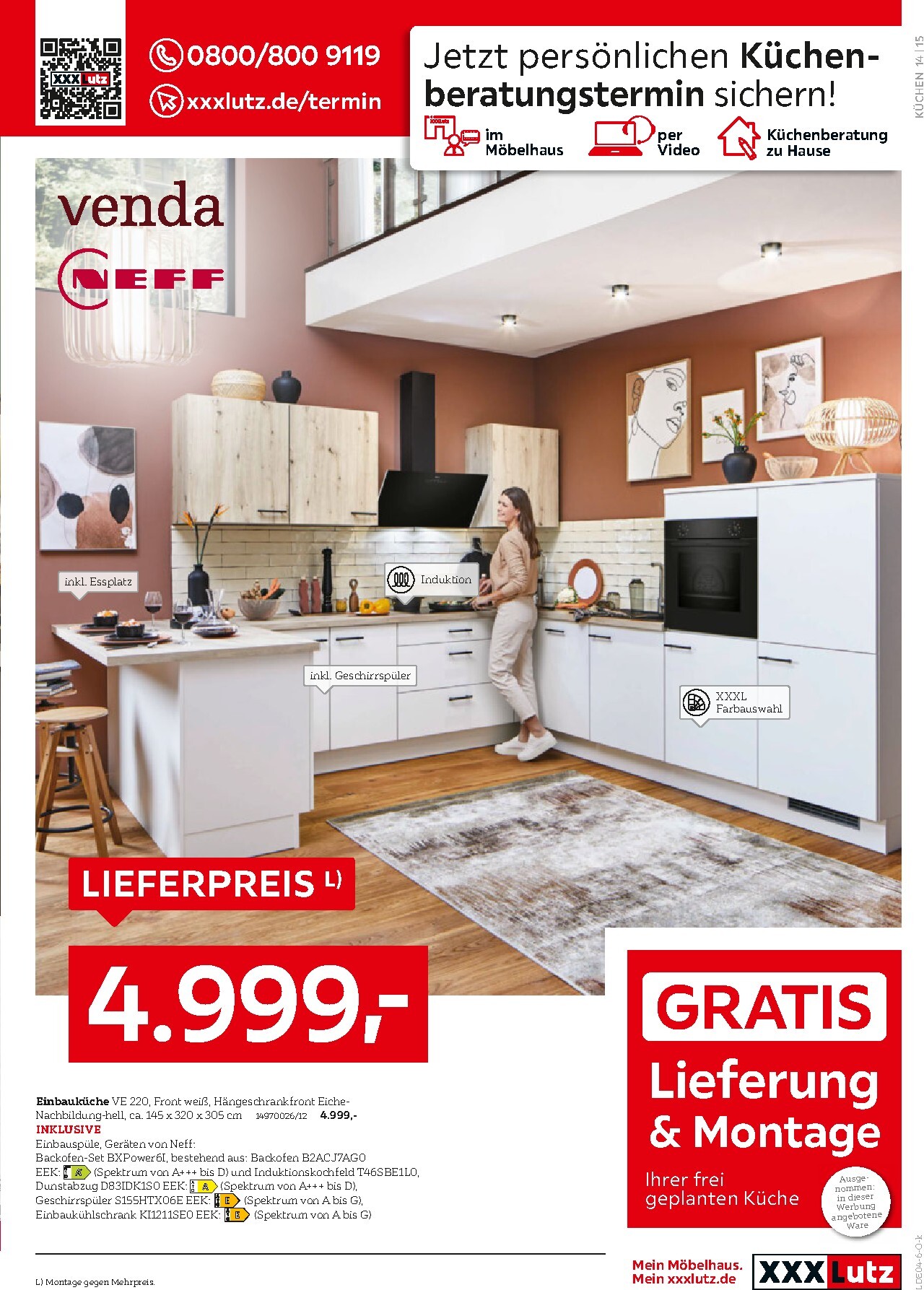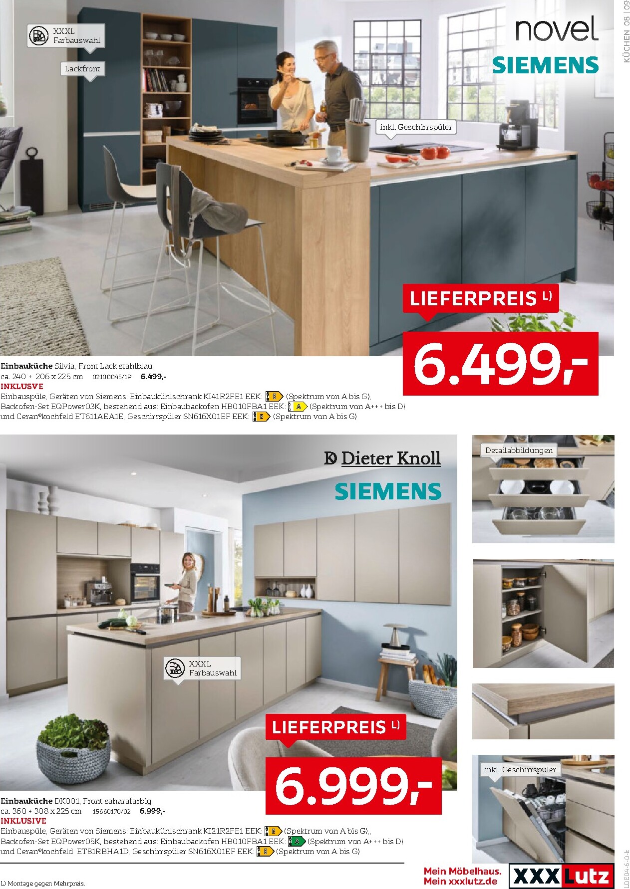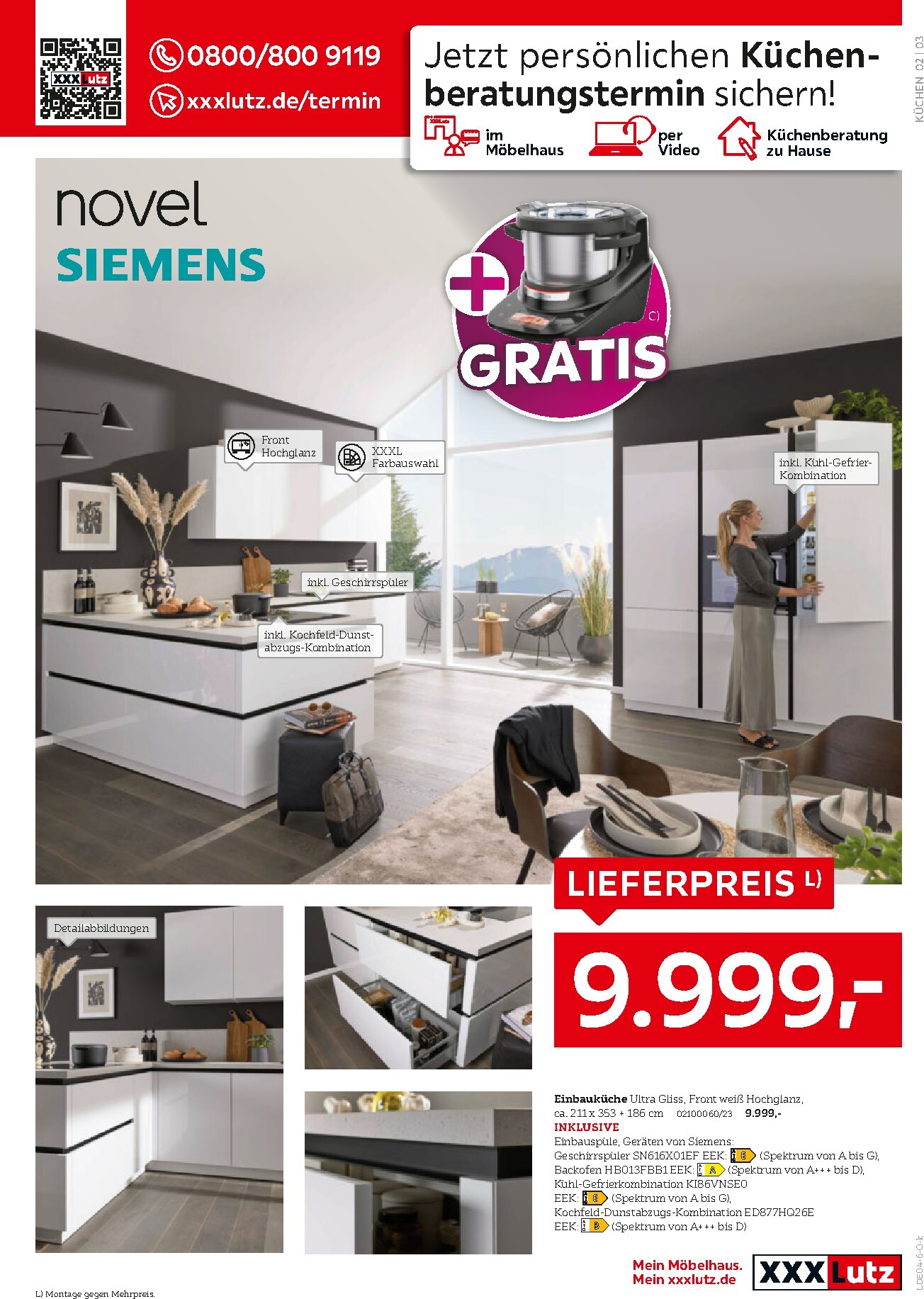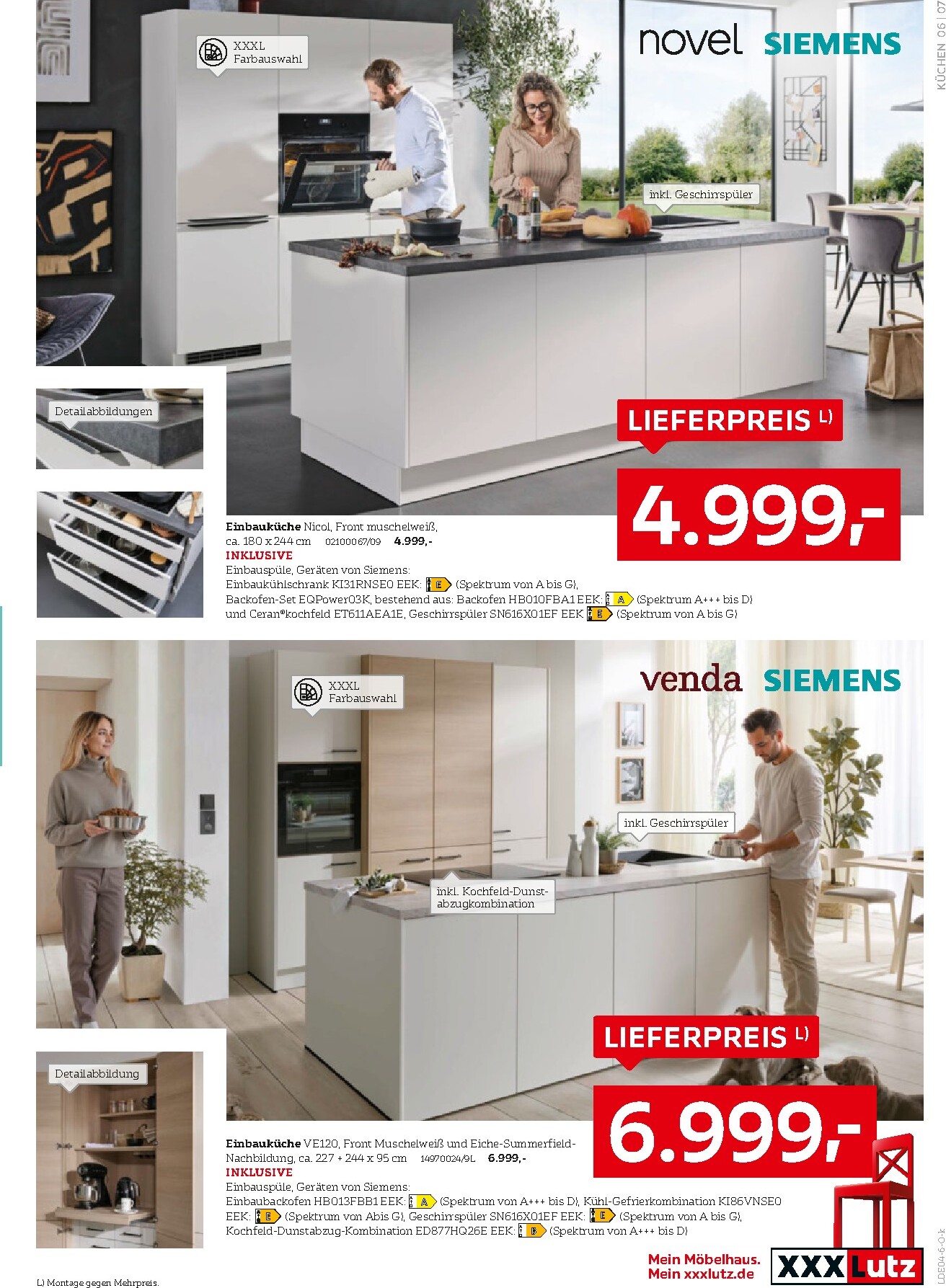 Auch die elegante Einbauküche von novel in Ultra Gliss Weiß Hochglanz für 9.999 € qualifiziert sich für diese fantastische Prämie. Sie überzeugt durch ihr klares Design und die inkludierte Siemens-Geräteausstattung. Darüber hinaus gibt es attraktive Angebote für Kühl-Gefrier-Kombinationen, die bis zu 45% mehr Volumen als Standardmodelle bieten, bereits ab 649 €. Entdecken Sie all diese und weitere unschlagbare Angebote im aktuellen XXXLutz Prospekt.