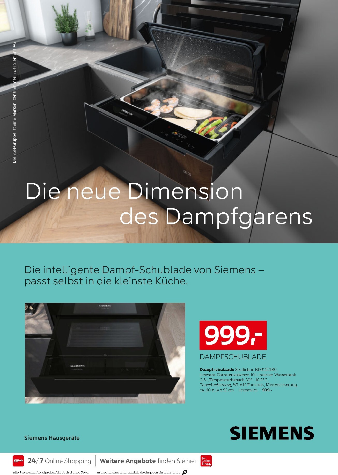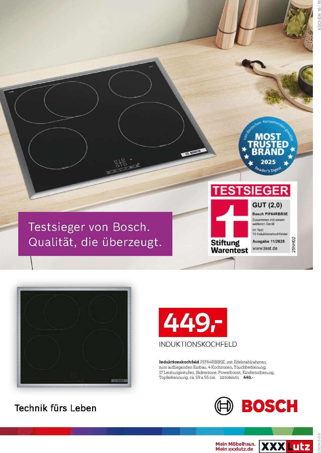 Das absolute Highlight der aktuellen Kampagne ist die unglaubliche „Cookit GRATIS“-Aktion. Beim Kauf einer Küche ab einem Gesamtwert von 9.999 € mit mindestens fünf Großgeräten der Marken Siemens, Neff oder Bosch schenkt Ihnen XXXLutz einen Bosch Cookit im Wert von 1.399 € dazu! Diese smarte Küchenmaschine ist der perfekte Helfer für kreatives und einfaches Kochen. Die Aktion XXXLutz Prospekt 11.04.2026 – 25.04.2026 Aktuelle Angebote macht den Küchenkauf doppelt lohnenswert und bringt modernste Kochtechnologie direkt in Ihr Zuhause. Wahlweise ist der Cookit in Schwarz oder Weiß erhältlich – solange der Vorrat reicht.