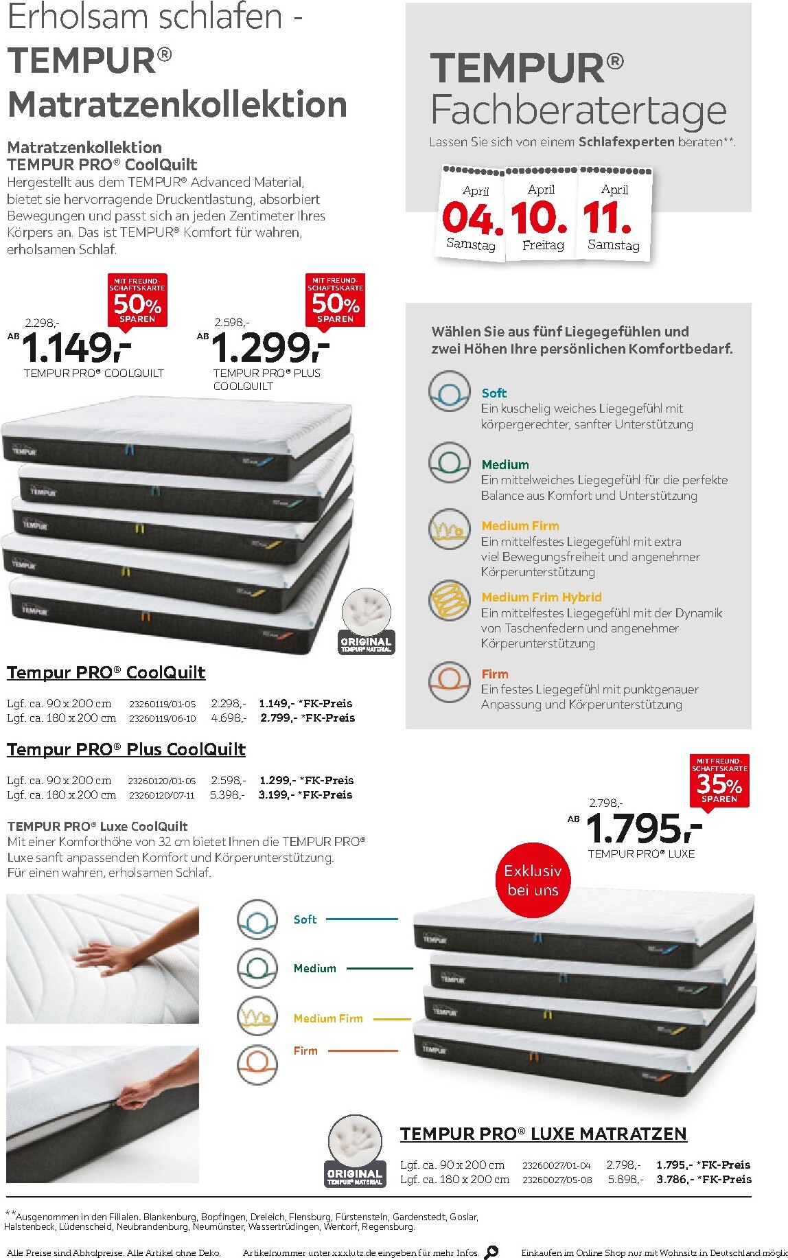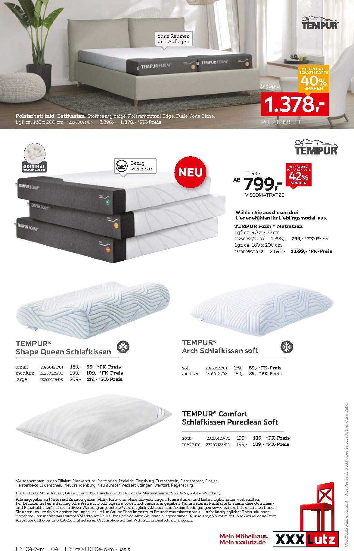 Die Zukunft des Schlafens beginnt jetzt bei XXXLutz mit den exklusiven Tempur Fachberatertagen. Wer von ultimativem Schlafkomfort träumt, sollte diese Gelegenheit nicht verpassen. Im aktuellen Prospekt finden Sie unschlagbare Angebote, die Ihre Schlafqualität auf ein neues Level heben. Mit dem XXXLutz Prospekt 29.03.2026 – 12.04.2026 Angebote nächste Woche entdecken Sie Rabatte von bis zu 50 % auf ausgewählte Tempur Produkte. Besonders Inhaber der XXXLutz Freundschaftskarte profitieren von 40 % Preisvorteil auf eine breite Palette der renommierten Marke, was die Investition in erholsame Nächte so attraktiv wie nie macht.