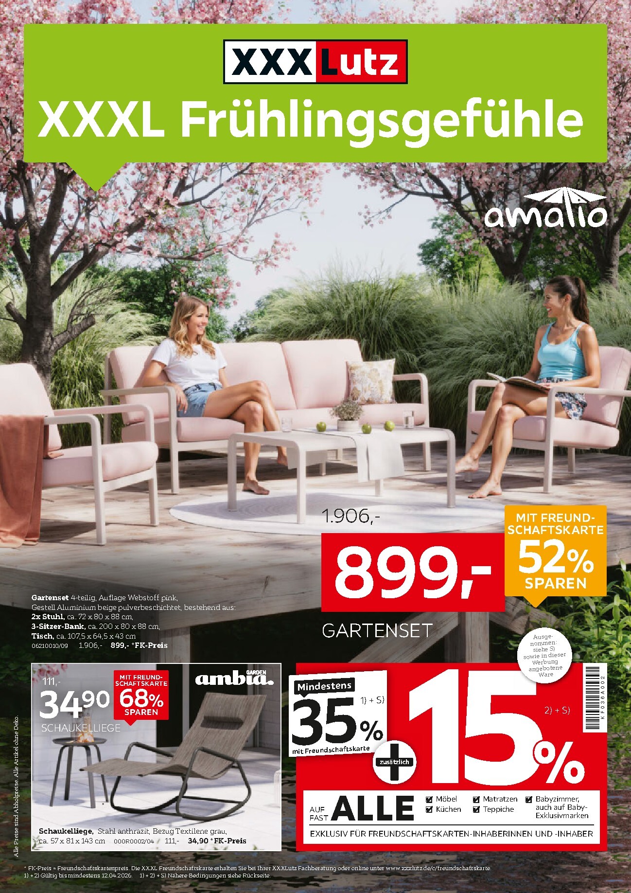 Der Frühling ist da und mit ihm die unwiderstehlichen Angebote von XXXLutz! Unter dem Motto „XXXL Frühlingsgefühle“ verwandeln Sie Ihren Garten, Balkon oder Ihre Terrasse in eine Wohlfühloase. Die aktuellen Aktionen sind prall gefüllt mit sensationellen Rabatten, besonders für Inhaber der Freundschaftskarte. Verpassen Sie nicht die Chance, hochwertige Outdoor-Möbel zu Tiefstpreisen zu ergattern. Die XXXLutz Prospekt 30.03.2026 – 12.04.2026 zum Blättern Online Online präsentieren eine riesige Auswahl, die von eleganten Gartensets bis hin zu gemütlichen Schaukelliegen reicht und keine Wünsche offenlässt.