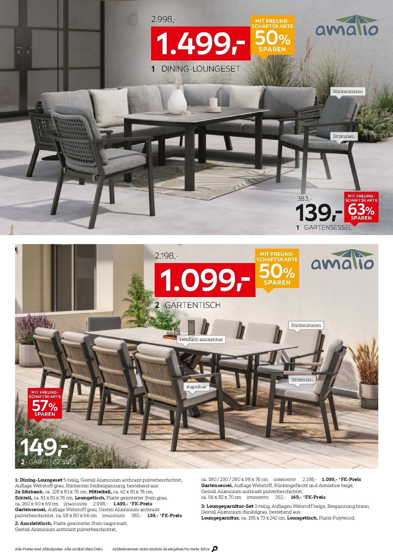 Die Spar-Aktionen erstrecken sich über das gesamte Sortiment, von einzelnen Stapelsesseln ab 44,90 € bis hin zu kompletten Loungegarnituren mit Rabatten von über 57 %. Mit der Freundschaftskarte profitieren Sie zusätzlich von bis zu 35 % + 15 % auf viele weitere Warengruppen wie Möbel, Küchen und Matratzen. Zögern Sie nicht und entdecken Sie alle Deals im aktuellen XXXLutz Prospekt.
