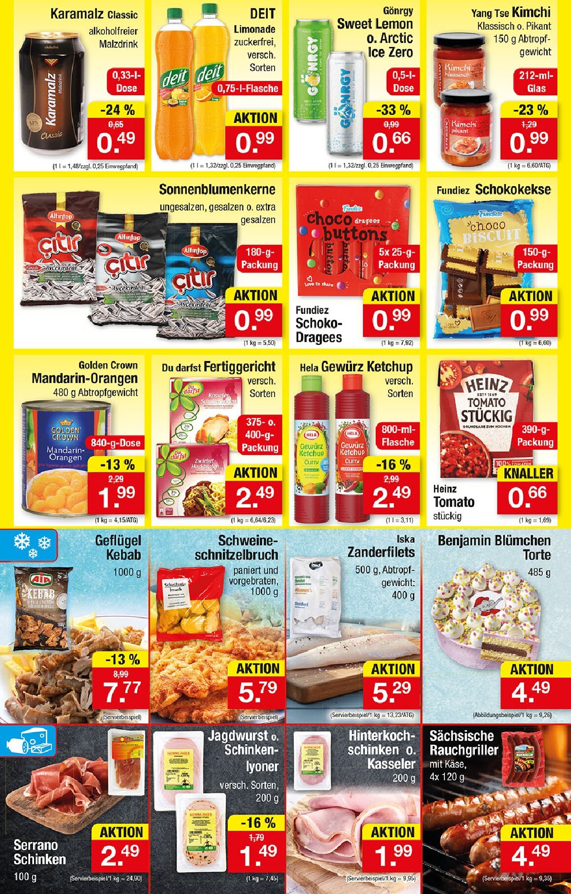 Auch die kulinarischen Genüsse kommen nicht zu kurz. Für Feinschmecker gibt es White Tiger Garnelen im Angebot für 9,99 €, ideal für Pfannengerichte oder den Grill. Wer es deftiger mag, kann sich auf saftige Schweine-Schnitzel freuen, die für nur 5,79 € pro Kilogramm erhältlich sind. Für den süßen Abschluss sorgt die beliebte Benjamin Blümchen Torte für 4,49 €, ein Traum für Groß und Klein. Abgerundet wird das Angebot durch alltägliche Helfer wie den Heinz Tomaten Ketchup für nur 0,66 € oder leckere Fertiggerichte, die den Alltag erleichtern.